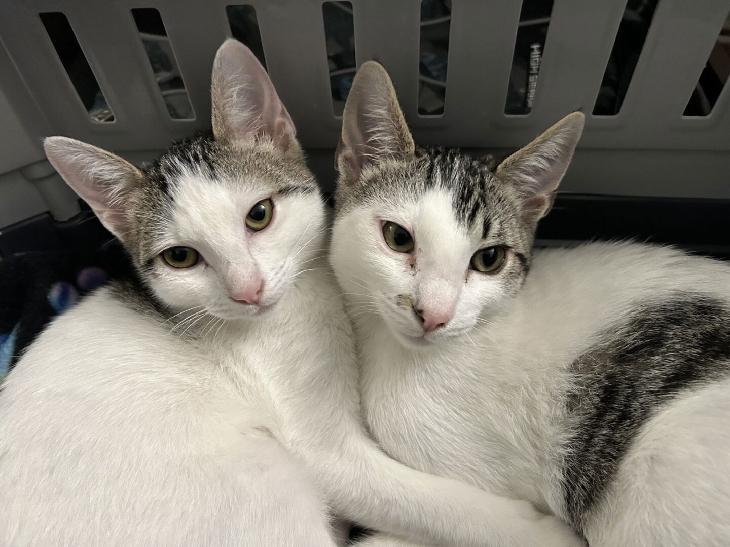 Estimated Birthday 07-01-2025 Okay to live in a home with… KidsDogsCats Physical Description Spot and Spotty are striking, short-haired kittens with a clean white base coat accented by soft gray tabby markings. Both have slender, elegant builds, long legs, and expressive almond-shaped eyes that give them a refined, almost symmetrical look as a pair.Their faces are predominantly white with delicate gray tabby caps and large, alert ears. Spot is easily distinguished by the small, charming spot on his pink nose, while Spotty’s markings are slightly more subtle and blended. Their coats appear smooth, well-kept, and glossy, reflecting excellent health and grooming habits.When together, they are often found curled closely side by side, mirroring each other’s posture—an immediately endearing visual that highlights their close bond and gentle nature. Personality Spotty is a soft-hearted girl with a calm, observant nature. She may be shy at first, but once she feels safe, her sweetness truly shines. Spotty is exceptionally clean, gentle, and quietly affectionate—especially with her beloved brother, Spot, whom she adores.She has a refined palate and a particular fondness for wet food, which is also the fastest way to win her trust. Spotty would do beautifully in a patient, loving home that appreciates her tender personality and gives her space to bloom at her own pace.She’s a quiet treasure for the right family. This kitty has what sort of characteristics? AffectionateCuriousMellowEnjoys being groomedLikes pettingLikes to cuddleEnjoys being heldLap catShy at firstBonded Pair The best home to adopt me would be Have had 1-2 cats The best home atmosphere would be Quiet/calmModerate activity Other animals? Slow intro needed with other catsLived successfully with other catsMay be best with other catsMust be adopted with another kitten or to a home with a resident catMay be good with gentle dogs Apply to adopt here! Online cat application form Applications are also available on the website (www.yolospca.org) It can take up to 3-5 business days to hear back once you have submitted an application. The Yolo County SPCA is a private, not-for-profit, foster home-based animal rescue organization and does not have a shelter. All our animals awaiting adoption are in foster homes. For more information about this animal, please email yolospcafoster@gmail.com. For more general questions, please see our website at www.yolospca.org. All of our felines have been altered prior to adoption. Kittens have been given their first shots of FVRCP, adults are up-to-date on vaccinations, and all cats have been Feline Leukemia tested (negative) and micro chipped. The fee to adopt is $135 for kittens or $80 for adults over 1 year (the fee helps cover these costs and the cost of the microchip registration). A reduced fee is available for adopting a second cat or kitten For more information about an animal, please email yolospcafoster@gmail.com. For more general questions, please see our website at www.yolospca.org.