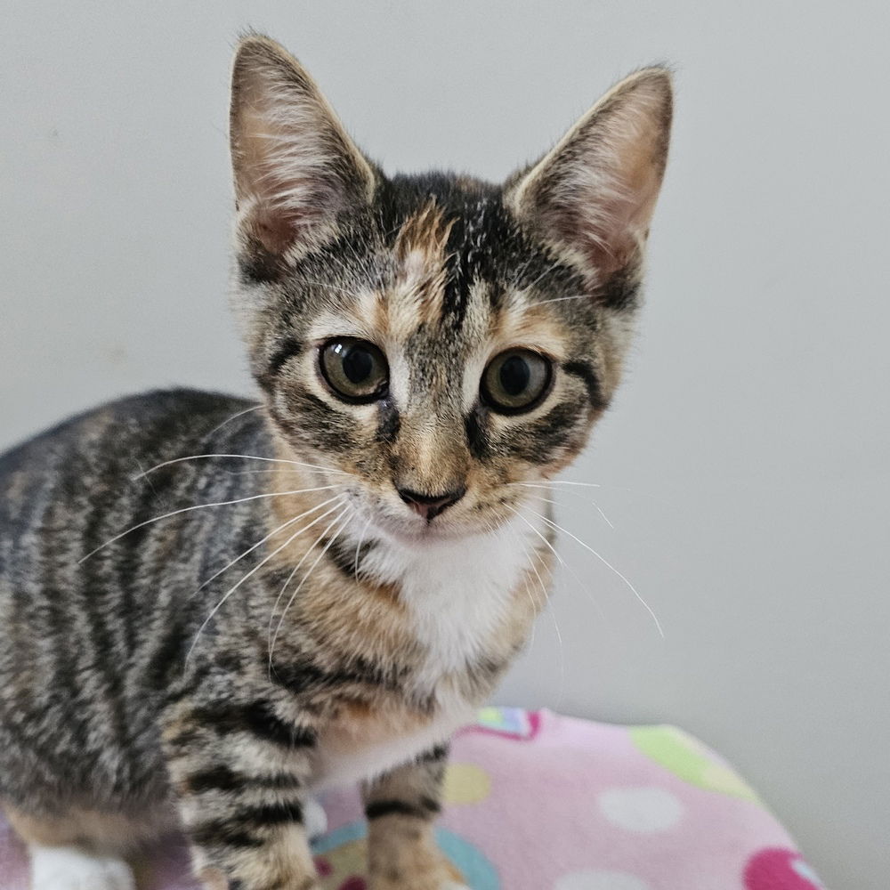 Sprinkles is a very sweet and pretty wide-eyed tabby girl! This friendly girl absolutely loves to cuddle up with her human(s) and get tons of love and attention! She has the softest, silkiest fur, so snuggling with her and giving her lots of pets is heavenly! She's a play machine(sometimes a bit roughly) and enjoys chasing small toys and wrestling with her 'yummy' siblings/friends(Pudding, Marshmallow, Jelly and Boba). After her playtime, she likes taking a quiet nap and has the cutest sleepy face. Curling up in a sunny spot by the window is her favorite napping space! A unique and funny little quirk of Sprinkles is how she follows her human to the shower and patiently waits there.Sprinkles should do well in a quiet household with people around most of the time(including gentle children) since she loves attention! She is very close to her siblings and would love to be adopted with one or more of them, but if that's not possible, she would need to have another kitty buddy around after a slow, thoughtful introduction. And since she's does well with dogs in her foster home, a cat-friendly dog would be fine, too.Sprinkles is a loving and charming cat who is sure to bring joy and warmth to any household. If you're looking for a cuddle buddy with a playful side and a heart full of love, then Sprinkles might just be the perfect match for you!WE DO NOT HAVE A PHYSICAL LOCATION AS WE ARE A FOSTER-BASED ORGANIZATION. PLEASE SUBMIT AN APPLICATION TO BE IMMEDIATELY CONNECTED TO A SCREENER.Apply at online application (catsfff.org/adopt)View all of our adoptable cats here (catsfff.org/cats)Our adoption fees are listed here (catsfff.org/adoption-fees)