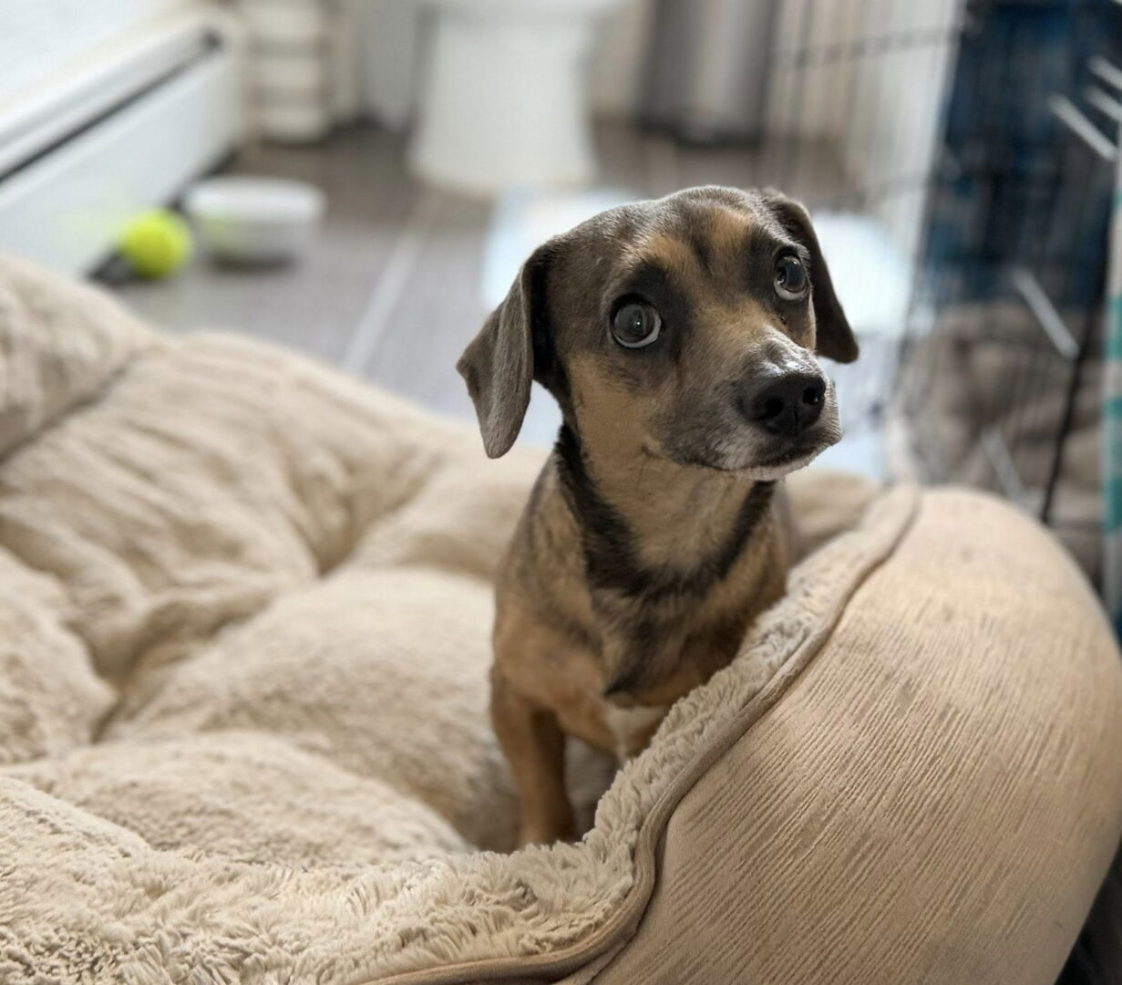See Spruce’s HomepageGo to our official websiteYou can fill out an adoption application online on our official website. Spruce is in NJ waiting for an adopter. Meet Spruce — our shy little sapling learning to trust again. When Spruce first arrived, the world felt big and scary. Sudden movements made him freeze, and he wasn’t sure what gentle hands were for. He’s slowly learning that soft voices mean kindness and that love can be patient. Spruce still feels safest in his crate, but every day he shows tiny signs of bravery—just last week, he ventured out for the first time, exploring for a moment before returning to his cozy spot. He’s a mellow soul who’s simply looking for a calm, quiet home where he can heal at his own pace. He’d do best with: – A peaceful home (no young kids) – Patient humans who’ll let him come around in his own time – A yard or small potty area while he learns leash life – Other gentle pets are perfectly fine Spruce may start out timid, but with love and time, we know he’ll blossom into the loyal companion he’s meant to be. If you have a calm heart and a quiet home, you might just be the safe place Spruce has been wishing for. Spruce will be up to date on vaccines. Wag On Inn will arrange for neuter at The Spay and Neuter Center of New Jersey in Holmdel. Adopters must live within driving distance of Holmdel, NJ. His adoption fee is $450. Adopting a dog is a commitment that will require annual veterinary care at a minimum, training, exercise, enrichment, etc. Pet care is not cheap or easy and adopters should consider the costs, time and training prior to adoption. After all these dogs have been through they deserve a loving, committed home. CLICK HERE TO FILL OUT AN ADOPTION APPLICATION!