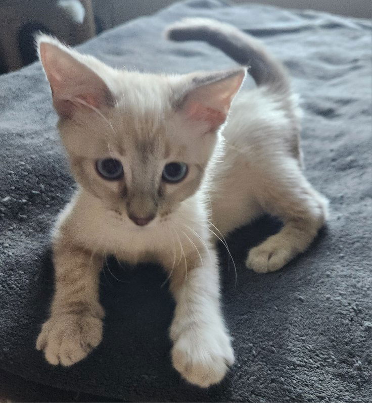 Meet Squawk Squawk- named for his hilarious, little meow Squawk is sure to bring a smile to your face. This adorable chunky three month old is an exquisite per machine, eager to meet you and show you how much he already loves you take a look in his crystal blue eyes and you will fall madly in love ! Adoption fee $300