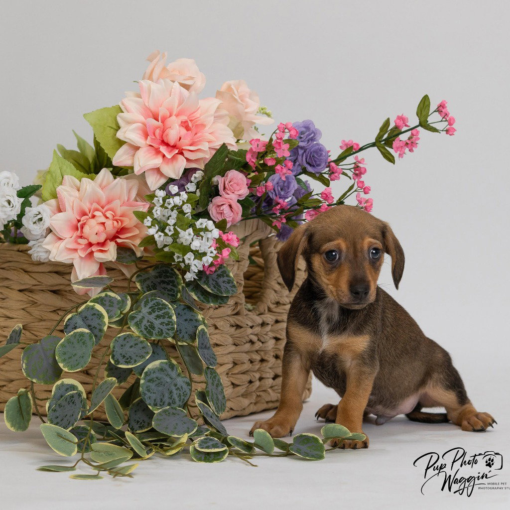 Squirrel is an adorable Chihuahua/Dachshund mix who was born on Christmas Day to his mom, Jalapeño—so he truly is a little holiday gift! While his mom looks more like a Chihuahua, Squirrel has taken after the Dachshund side of the family with his longer body, short legs and charming look.He’s a sweet, cuddly pup who loves attention and enjoys playing with any dog that’s willing to join in the fun. Squirrel has a playful personality but also enjoys snuggling up when it’s time to relax.Squirrel is crate trained and mostly house trained, though like many young pups he may have the occasional accident as he continues learning his routine. With consistency and patience, he’ll keep doing great.Squirrel is currently too young to be neutered. His adoption will require that his new family can bring him to his scheduled veterinary appointment in Claremore, OK on April 21st, where he will receive his final vetting, which is covered by Okie Pet Rescue.If you’re looking for a lovable, playful companion with lots of personality packed into a small package, Squirrel could be the perfect addition to your family.<br /><br />Okie Pet Rescue<br />okiepetrescue@gmail.comokiepetrescue.org<br />An application must be completed and approved after a comprehensive review. Adoptions include spay or neuter, current vaccinations, and heartworm testing.