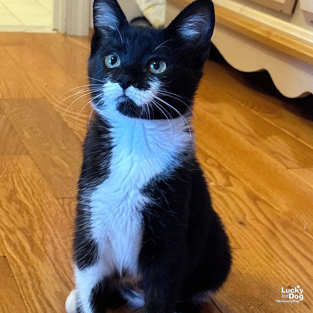 Please contact Mollie Gorney (mollieg@luckydoganimalrescue.org) for more information about this pet.Sweet baby needs a forever home!STACHEY NEEDS A FOREVER HOME! COME MEET STACHEY AND OTHER GREAT ADOPTABLE CATS ON SUNDAY 12/21 FROM 12PM-3PM AT THE PETSMART IN FALLS CHURCH (6100 ARLINGTON BLVD, FALLS CHURCH, VA)! Name: Stachey Best Guess for Breed: Domestic Short Hair Age: 4 months as of 12/20/25 Est. DOB: DOB 8/18/25 SEX: Female Weight: 3 lbs 3 oz as of 11/14/25 Coloring: Tuxedo Type of Hair: Short Gets Along With: Because of her young age, Stachey will likely get along with other cats, dogs and kids with an acclimation period. We’re happy to help with tips and tricks! Currently Living at: DC area foster home I am Looking For: My loving forever family! Hi! I’m Stachey, and I am a cute little kitten! I won’t ask for much- just some love, cuddles and lots of toys so I can run and play and be my kitten self. What my Foster Says About Me: Stachey is super friendly and playful. She is living with other cats and doing great. She uses the litterbox like she should and is easy to hold and cuddle with! Kitten Vetting Requirements: Your kitten may not be fully vaccinated upon adoption. You will be responsible for providing whatever remaining vaccines are needed to complete the kitten vaccine series. TO ADOPT: The adoption fee for adult cats is $200 ($350 for two cats adopted together). The adoption fee for a kitten (under 7 months old) is $220 ($380 for two kittens adopted together).If you are interested in adopting, please complete the Adoption Questionnaire online at bit.ly/adoptaluckycat. Lucky Dog Animal Rescue does our best to provide accurate information about the cats we have for adoption. That said, we cannot make any guarantees about age, breed or temperament. Thank you for contacting Lucky Dog Animal Rescue and helping to save a life! Please visit us online at www.luckydoganimalrescue.org . BE A FOSTER!!! Fosters make it possible for Lucky Dog Animal Rescue to save and care for homeless and abandoned dogs! To learn about fostering, please contact fostering@luckydoganimalrescue.org BE A SPONSOR!!!! Sponsors help Lucky Dog support the many dogs we save. To learn more about sponsorship, please contact info@luckydoganimalrescue.org !