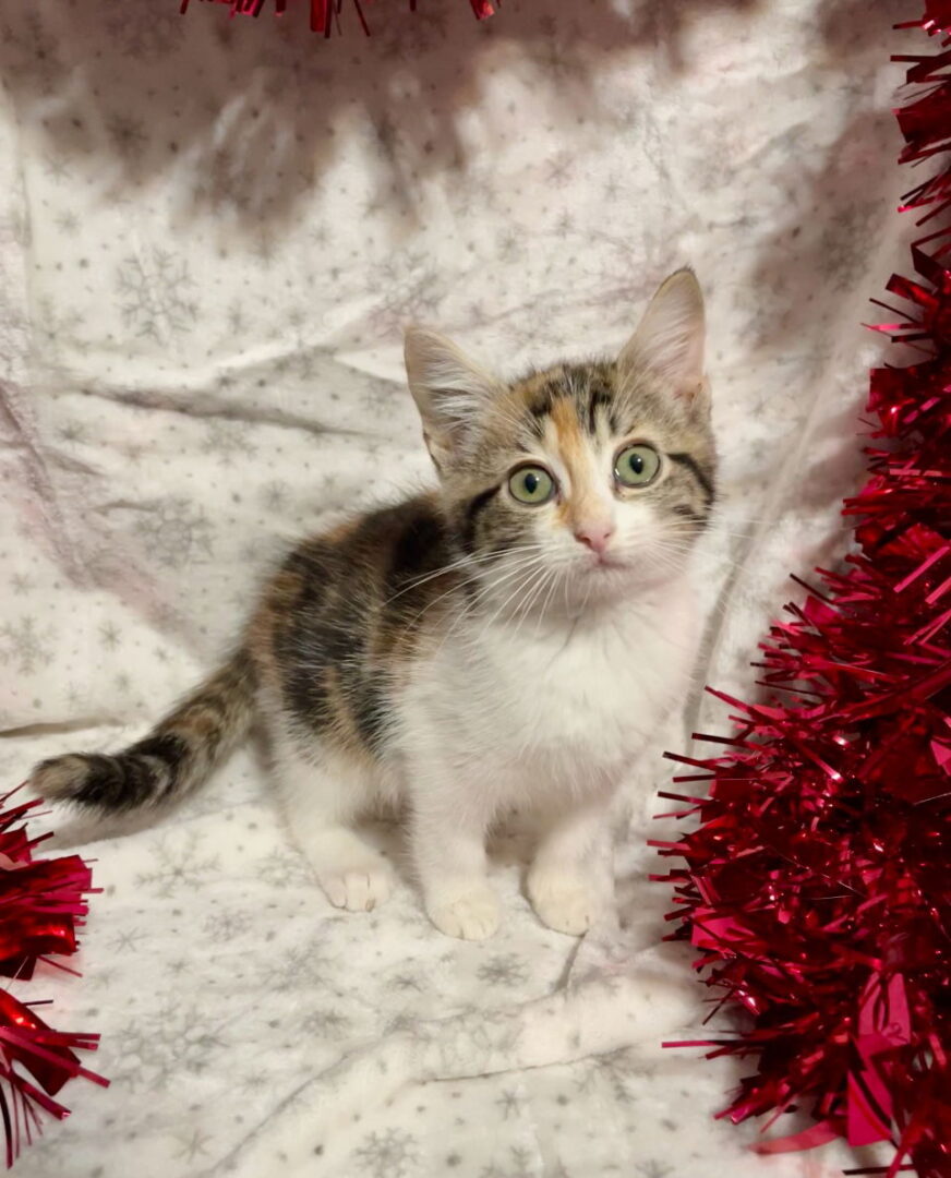Hey I’m Starburst! I got that name because of my colors. I am a Tabbico. I am beautiful! I love to play with wand toys and ball toys. I would love a big comfy bed when my person adopts me. I always lay in the clean bed basket after my foster mom does laundry. Are you my forever home? I do require a young kitty playmate in the home.