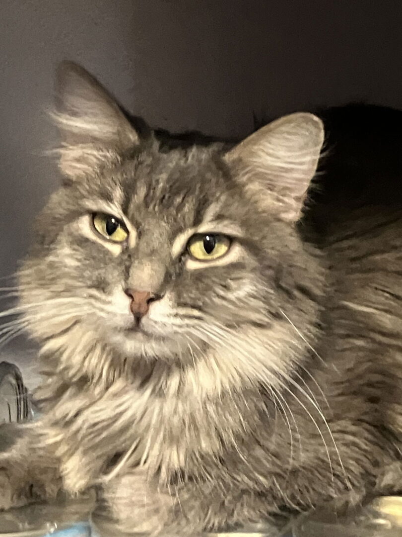 Steamer, named after a My Little Pony character, is an extremely shy but playful kitten who will warm up to you in his own time. Could take a few days, or even weeks. Once he feels comfortable, Steamer will seek affection on his own terms, often asking for love in his unique way. He enjoys lounging around, playing with his siblings, and indulging in treats. Favorite toys include plastic coils (a required toy), crinkle balls, jingle balls, and toy mice. Steamer is a treat addict and loves watching BirderKing on YouTube. He has long hair that requires frequent grooming and is not fond of dogs, often avoiding them altogether. Steamer is best suited for a calm home environment with or without older children, where he can feel secure and comfortable. No small animals like mice, hamsters or birds. He can be a door darter, so be aware of where he is when entering and exiting your home. He is neutered, vaccinated, microchipped, and tested. His estimated birthdate is 6/1/2023, and his adoption fee is $140.