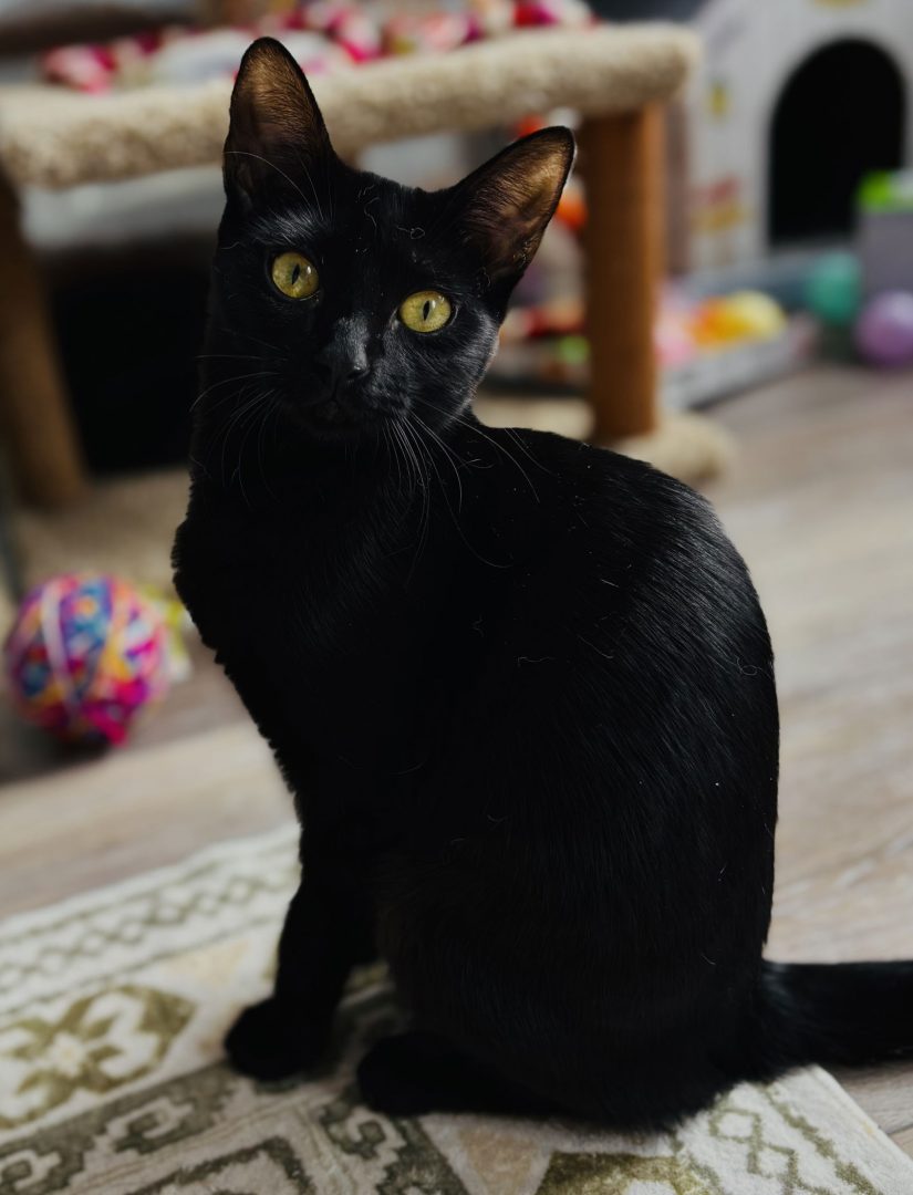 Stella is a stunning midnight-colored cat with a soft, silky fur that feels gentle to the touch. Her striking black coat is complemented by her bright, expressive eyes that shimmer like polished emeralds. She exudes pure elegance, moving with a graceful and refined demeanor. Her personality is calm, composed, and feminine, making her an ideal companion for a serene household. Stella adores her afternoon naps, often curling up in cozy spots around the house, showcasing her tranquil nature. She is perfect for someone seeking a beautiful, regal feline to be the queen of their home. Her sweet and loving disposition makes her feel like a delicious candy, offering comfort and affection to those she bonds with. Rescued from the bustling streets of San Francisco, Stella has been cared for and is now ready to find her forever home. She is approximately 6 months old, fully vaccinated, and litter-trained, eager to bring love and elegance into her new family. Why adopt cats from Philly Jenkins Rescue? 501C3 • San Francisco • Saving Medically At-Risk Cats • PayPal :Philly Jenkins Rescue (EIN #: 99-3642588) • Foster & Donation Based Only Would you like to see more pictures of me? Instagram/Facebook: phillyjenkinsrescue Email: phillyjenkinsrescue@phillyjenkinsrescue.org Kittens are only eligible for adoption in pairs unless there is already a cat living in the home. The standard adoption fee is $200, and if you adopt two kittens at once, the second one is free of charge. What is done before Adoption? Testing for Parasites Deworming Monthly Flea Medications Dental Checks Nail Trims Ear Cleaning Culture testing for Ringworm FIV TESTING Microchipped Neutered- Our rescue neuters at 5 Months Spay – Our rescue neuters at 6 Months Completed my vaccinations for the year Blood work testing and more…. All health exam invoices, medical charts, and a free exam at my current veterinarian are available. If you continue using our veterinary services, we offer a 10% discount on all veterinary care. Applications open now: Due to safety Stella wont be available to be placed until November. Adoption Link: www.pjcat.org/adoption-app Foster App Link: www.pjcat.org/foster-app