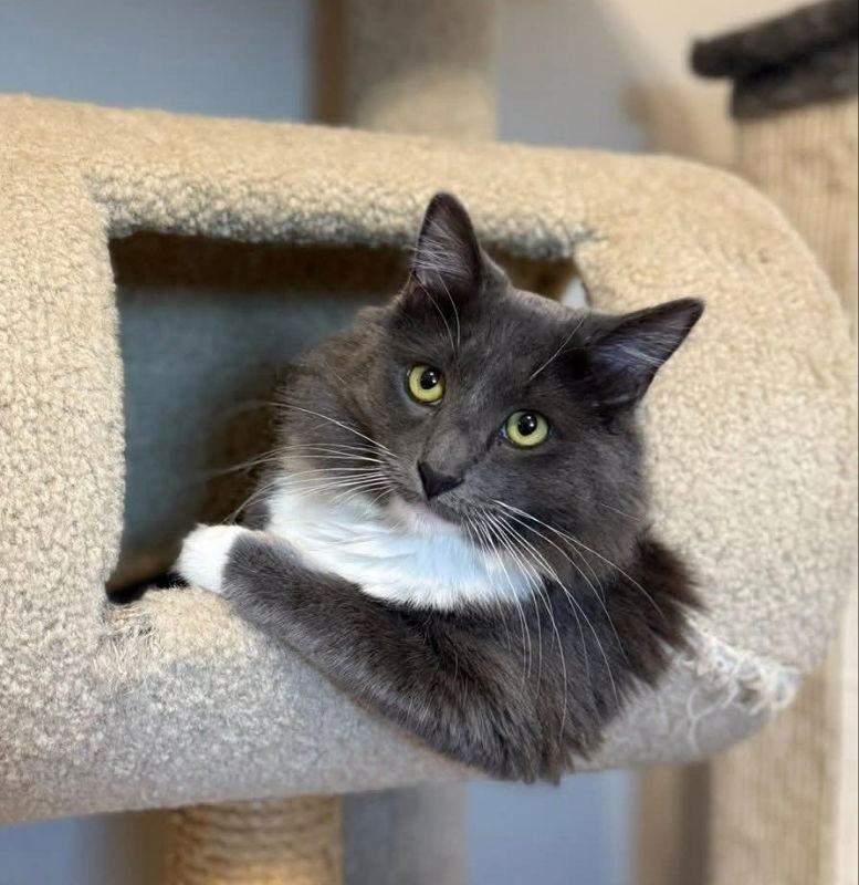Hi, my name is Stormy. I’m a handsome, one-year-old gray tuxedo DMH boy, born in September 2024, with a calm presence and a quietly loving heart. I’m gentle, loyal, curious, and just playful enough to keep life fun — especially when a laser pointer is involved (I am a master laser chaser). I truly appreciate the simple pleasures: napping in sunny spots, gazing out the window to keep an eye on the neighborhood, and observing the goings-on inside my home from my favorite vantage points. I used to hide under the bed, but these days you’ll find me right in the middle of the action, happily keeping my humans company. I love relaxing on the couch, supervising cooking sessions, and being a steady presence during late-night schoolwork in the kitchen. I’d make a wonderful companion for someone who works from home. I show my affection in sweet, meaningful ways by greeting my foster parents when they come home and staying close to let them know they’re loved. While I’m confident and comfortable with my foster family, I can be shy and cautious with new people at first. With patience and time, my true personality shines through. I get along well with both dogs and cats and am especially patient and gentle with young kittens. My foster family says I do an excellent job welcoming new fosters and helping them feel safe. I thrive on routine and look forward to wet food twice a day and our nightly laser-chasing ritual before bed. One important thing to know about me is that I have stomatitis, an autoimmune condition that causes inflammation in my mouth. My vet recommends regular check-ups every six months, along with dental care that may include cleanings or extractions. I recently had six teeth removed, and I’m already feeling much better. Medication can also be used when needed to manage inflammation. Despite this condition, I don’t let it slow me down — I behave just like a typical one-year-old cat, and my foster parents have been impressed by my resilience and positive spirit. I’m looking for a patient, loving family who will prioritize my health and give me time to settle in. A quieter home with respectful family members would be ideal, and I’m happy to share my space with other dogs or cats. If you think we might be a good match, I’d love for you to submit an application. My foster family would be thrilled to talk with you about how special I am and the joy I’ve brought into their lives.