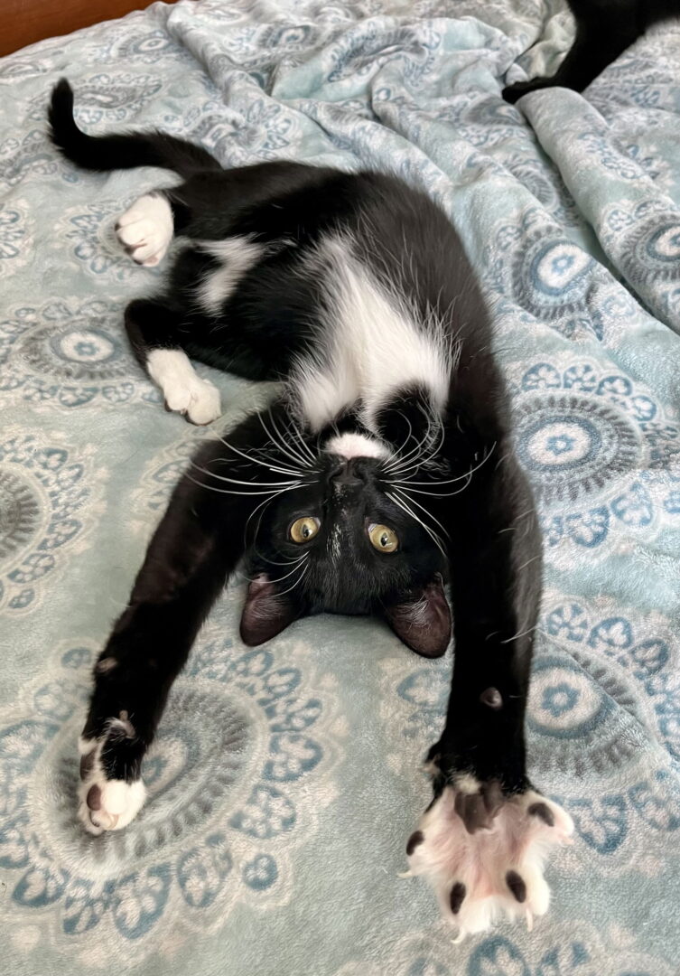 See Stripe’s HomepageGo to our official websiteYou can fill out an adoption application online on our official website. Meet Stripe. He loves weaving around my legs, watching me brush my teeth and snuggling in bed with me. He loves loves loves snuggling as closely as he can in my bed at night. I do believe he developed FOMO (fear of missing out) as he follows me everywhere I go. Nothing is private when he is around ( including my bathroom breaks) but at least I’m never lonely. I’m thinking of changing his name to Dash or Flash because darts through any door I open first to assure that he is not left behind. As you can see by his pictures….his personality is BIG! He gets along great with other cats and dogs. How could you not love this silly boy? He is fully vetted and microchipped. To inquire more about him please email us at stfureverfreedomar@gmail.com
