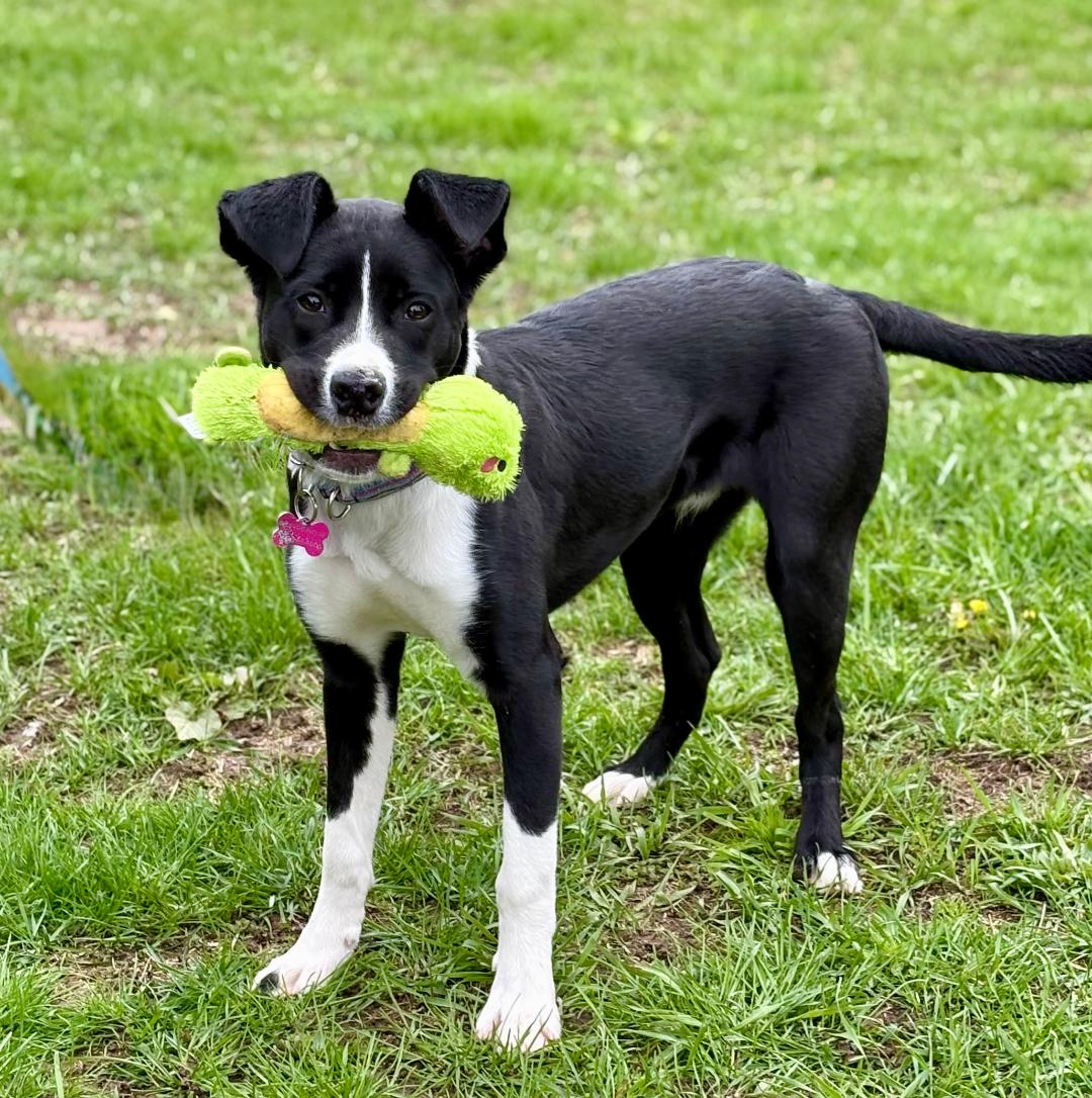 See Strudel’s HomepageGo to our official websiteYou can fill out an adoption application online on our official website. Meet Strudel, an adorable 10-month-old puppy! Strudel is a mixed breed (maybe a Border Collie mix) and currently weighs 40 lbs. Strudel is a sweet, playful boy. He has typical puppy energy and a captivating personality! Strudel is a very smart boy and is doing great in obedience training. He loves to play ball with our volunteers, but is also happy entertaining himself with toys. It’s impossible not to laugh when spending time with this engaging pup! Strudel has a wonderful temperament and would do well with an active family. Please help us get this cutie out of the shelter and into a loving home as quickly as possible! If you’d like to meet Strudel, please fill out an application on our website at rescueridge.com. If your application is a possible match, a volunteer will reach out to you to schedule a meet.