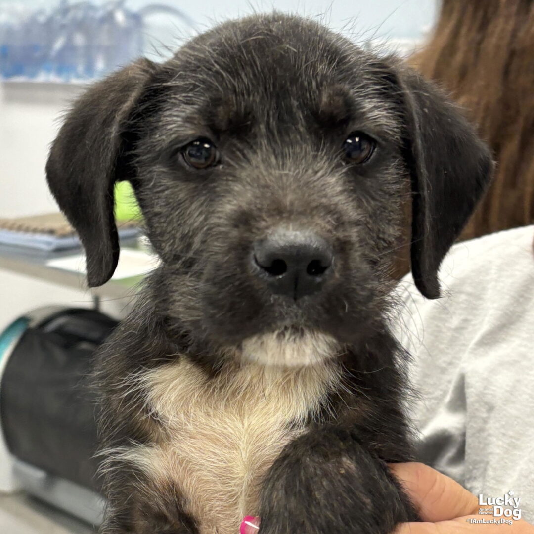 Please contact Ann Marie Burns (AnnMarieB@luckydoganimalrescue.org) for more information about this pet.Serious Puppy Face STUFFIN NEEDS A FOSTER OR FOREVER HOME!!!! Name: Stuffin Best Guess for Breed: Wire Hair Terrier/Pointer Mix Best Guess for Age: 3 months as of April 2025 SEX: male Estimated Weight (puppies’ weights change quickly!): 17 pounds as of 04/19/2025 Gets Along With: Most puppies are in the prime of their socialization window and will do well with other dogs, cats and kids so long as they receive patience and proper training. Currently Living at: SC Shelter; Needs D.C. area foster or forever home! Special Adoption Considerations: Puppies under 6 months of age need to have multiple potty breaks/exercise throughout the day. Potential adopters with a standard 8-hour workday must be willing to make arrangements to meet the needs of their puppy. Stuffin is Looking For: Hiya! I’m Stuffin! I have loved my time in the puppy pile with my mom Stefana, but we are both ready to pack our bags and find our very own forever homes! I’m looking for a home that will let me play with toys and get my puppy zoomies out and give me snuggles in between playtimes. When I’m a little older, I can’t wait to explore my new neighborhood on lots of walks, and I’d really like to make a bunch of doggie friends along the way. Oh, and I should probably take a puppy obedience class or two so I can show you how smart I am. What do you say? Do you have room in your heart for me? What My Foster Says About Me: We will update this section once the puppy has arrived in the D.C. area and spent some time with his foster family. Puppy Vetting Requirements: Lucky Puppies have had their age appropriate vaccines, but may not yet be “fully” vaccinated. It is the adopter’s responsibility to ensure that the remaining puppy vaccines are given at the appropriate time. Please also keep in mind that, until your puppy is fully vaccinated, they are at greater risk for illness than an adult dog. Due to this puppy’s young age, she/he has not yet been spayed or neutered. As part of the adoption contract, it will be your responsibility, as the adopter, to ensure that this is done no later than JULY 19, 2025. There are NO EXCEPTIONS and NO EXTENSIONS to this date. A non-refundable spay/neuter deposit will be collected if you would like Lucky Dog to pay for this animal to be spayed/neutered at one of our low cost partner vets. Your new puppy will need to work on their house training and will also need to go to obedience school so they can grow into a well-socialized dog! TO ADOPT: The adoption fee for this puppy is $485, which includes the cost of routine vetting and transport from the shelter. If you are interested in adopting, please complete the Adoption Questionnaire online bit.ly/adoptaluckydog Lucky Dog Animal Rescue does our best to provide accurate information about the dogs we have for adoption. That said, we cannot make any guarantees about age, breed or temperament. Thank you for contacting Lucky Dog Animal Rescue and helping to save a life! Please visit us online at www.luckydoganimalrescue.org . BE A FOSTER!!! Fosters make it possible for Lucky Dog Animal Rescue to save and care for homeless and abandoned dogs! To learn about fostering, please contact fostering@luckydoganimalrescue.org! BE A SPONSOR!!!! Sponsors help Lucky Dog support the many dogs we save. To learn more about sponsorship, please contact info@luckydoganimalrescue.org . ​