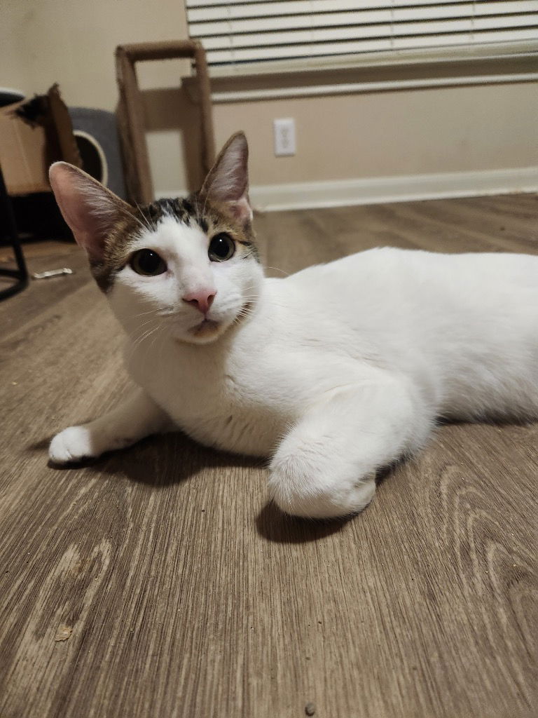 Meet Sugar! Sugar is a sweet baby full of love! He’s a big fan of both playtime and cuddle time, and loves to curl up with – or on – a good book!To inquire about adopting this cat please complete an adoption application at tinyurl.com/ccapadoptions Once you submit an adoption application, a foster will reach out within 48 hours to schedule a meet-and-greet or ask any additional questions. If you haven’t heard back within that time, please contact **adoptions@sanantonioferalcats.org** so we can follow up. If the cat you’re interested in isn’t listed in the dropdown menu, it may be pending adoption or recently adopted, but the website hasn’t been updated yet. Feel free to email us for confirmation. Thank you for choosing to adopt one of our amazing cats!