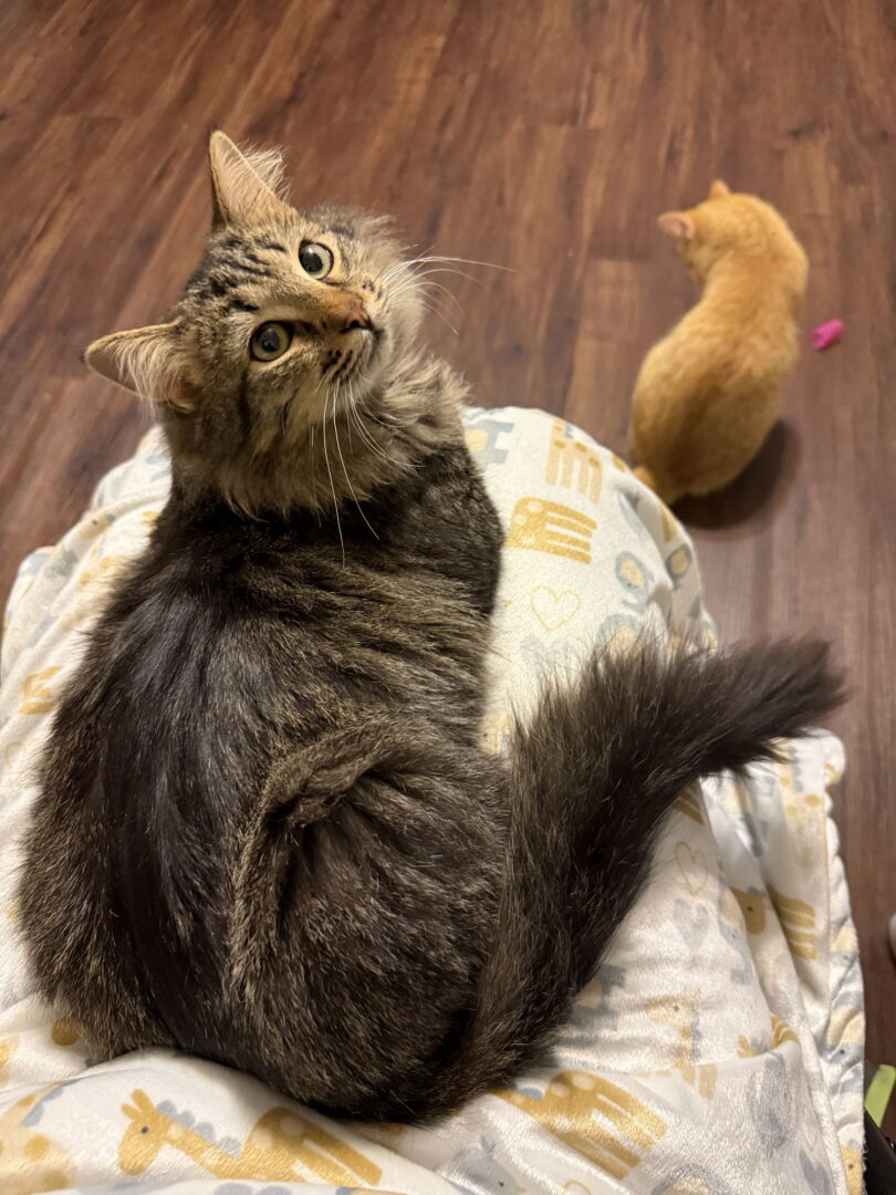 If you are interested in adopting an ARPO pet, please visit our website, for details about our fees and process, and to complete our Adoption Application. ARPO limits adoptions to within 50 miles of Indianapolis. We do not have a shelter; all pets are in volunteer foster homes. Sulley and Mike Wazowski are a pair of lovable, bonded brothers named after the iconic characters from Monsters, Inc. —and just like their namesakes, they’re full of personality, charm, and plenty of heart. Found dumped outside around Halloween, these two weren’t scared at all—just sweet and eager to find their forever home together. Sulley, the fluffy, long-haired brown brother, is your gentle giant. He’s affectionate, loyal, and always nearby, ready to be your shadow. Whether he’s snuggling in your lap, following you from room to room, or chirping little meows to say “I love you,” Sulley’s mission in life is to make you feel adored. He’s also a spring toy fanatic, often carrying them around proudly or showing off his expert batting skills. Mike, the short-haired orange brother, balances Sulley’s clinginess with a more relaxed vibe. He enjoys lounging in the cat tree to watch squirrels, batting and hunting toys, and climbing into your lap when he’s in the mood for cuddles. Mike also has a soft spot for giving gentle love rubs against your legs. Both kittens share a love for wet kitten food and the feather-on-a-stick toy. Their bond is as unbreakable as the friendship between their namesakes, making them inseparable. If you’re ready to open your doors to these two "scarers-in-training," Sulley and Mike Wazowski are waiting to show you that laughter—and love—are the best powers of all! Sulley & Mike’s estimated date of birth is 6/1/24. They have been neutered, microchipped, and dewormed. They tested FIV/FeLV negative, have a negative fecal, and are up-to-date on vaccines. Their ideal adopter is willing to feed them a moisture-rich species-appropriate diet (wet food). They are being fostered in central Indianapolis. Apply to adopt them today at www.adoptarpo.org/adoption-application/ Sulley & Mike are at Nine Lives Cat Cafe until 1/7/25. To schedule a time to meet them and other ARPO kitties, please visit ninelivescatcafe.com. Normal ARPO adoption requirements still apply. If you are interested in adopting an ARPO pet, please complete the online Adoption Application. If you would like to donate to this pet's care, please click here.