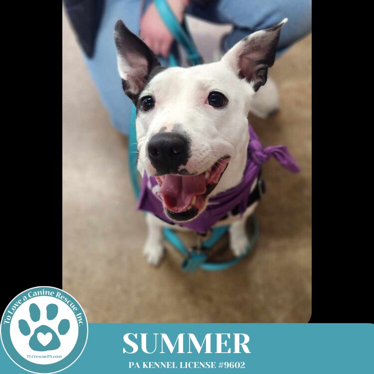 Meet Summer! Breed: Mixed Breed Estimated DOB: 05/01/2023 Sex: Female (spayed) Weight: 30-35 lbs Up to date on all age-appropriate vaccinationsThings to Know About Summer: Rescued from Mississippi A social butterfly—Summer loves people and other dogs and thrives on attention and affection Playful and enthusiastic—loves to run and play with her stuffed animals, other dogs, and humans Enjoys entertaining herself with toys, especially balls and benebones Loves spending time outdoors for playtime Enjoys curling up on the couch with her favorite humans Adventurous—enjoys exploring new places, including walks and hikes Wags her tail at the sight of her leash (working on leash manners) Comfortable with car rides Housebroken—reliably goes to the door to indicate when she needs to go outside Crate trained, settles in comfortably with a bed and treat Dog-friendly and loves playing with other dogs Not a good fit for homes with cats Looking for a loving, committed forever home to provide her with the care, love, and structure she deserves!Learn more and apply to adopt at TLCrescuePA.org/adoptInterested in fostering? Join our 100% foster-based team at www.tlcrescuePA.org/foster. #AdoptSummer #TLCRescuePA #MixedBreedLove #RescueDogsRock #ForeverHomeNeeded #PlayfulPup