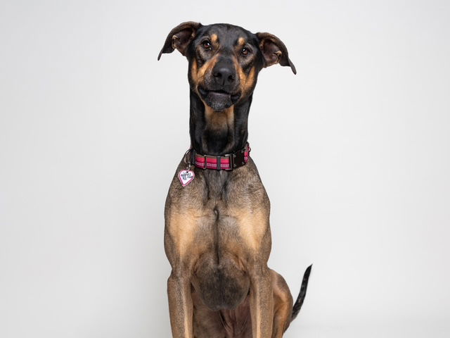 Meet Suri!-3 year old spayed female Doberman mix-Came into the Shelter as an owner surrender after her previous guardian was unable to continue caring for-Lived in a home with a corgi and husky type dog-Lived in a home with children ages 8 to 10 years old. Would sometimes accidentally knock them over when playing-History of being crate trained in previous home-House trained-Comfortable riding in the car-Enjoys going for runsPlease note: Our Santa Cruz location’s Shelter hours are 11-6pm, 7 days a week! Although clients can walk through and see any animals in their kennels during open hours, we end “meet and greets” (aka meeting an animal out of the kennel) at 4:30pm every day. If you’d like to meet an animal out of the kennel, please arrive before 4:00pm to allow for time to discuss individual animals and meet them.