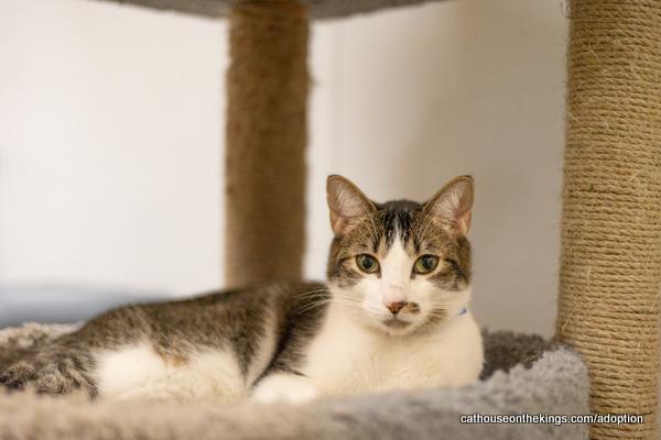 Sushi is a friendly, outgoing boy who’s full of personality and charm! Adopted as a kitten with his sister Sasha, he’s recently come back to us through no fault of his own — his loving adopter had to move and sadly couldn’t take them along. Now Sushi is hoping to find a new forever family who will cherish him as much as he’ll cherish them! Sushi loves attention and being part of the action. While he’s not quite a lap cat, he’s happiest when he’s right next to you on the couch, soaking up all the pets — especially those perfect scratches right by the base of his tail (his favorite!). He’s talkative, social, and absolutely loves when you talk back to him. Playtime is always on his schedule — strings, laser toys, and anything that moves are fair game. He’s also a curious kitty who loves cozy spots like baskets or cat beds with sides, and he enjoys high-up perches where he can lounge like royalty. Sushi also has a funny little quirk: he adores drinking from sinks and will happily wait for you to turn the faucet on just a little so he can enjoy his “fancy” water. Some of his other favorites? Bird-watching from the windowsill, a nibble of tuna now and then (he knows the sound of a can opener!), and just being around people — especially kids. Sushi would love to be adopted with his sister Sasha, but he’s also confident enough to do well on his own in a loving home where he’ll be showered with attention and affection. Recently had complete dental cleaning and blood work Please note:Sushi is ok with small children For more information & an online application go to https://www.cathouseonthekings.com/adoption/cat.php?id=20485&ts=1761721409&src=rg