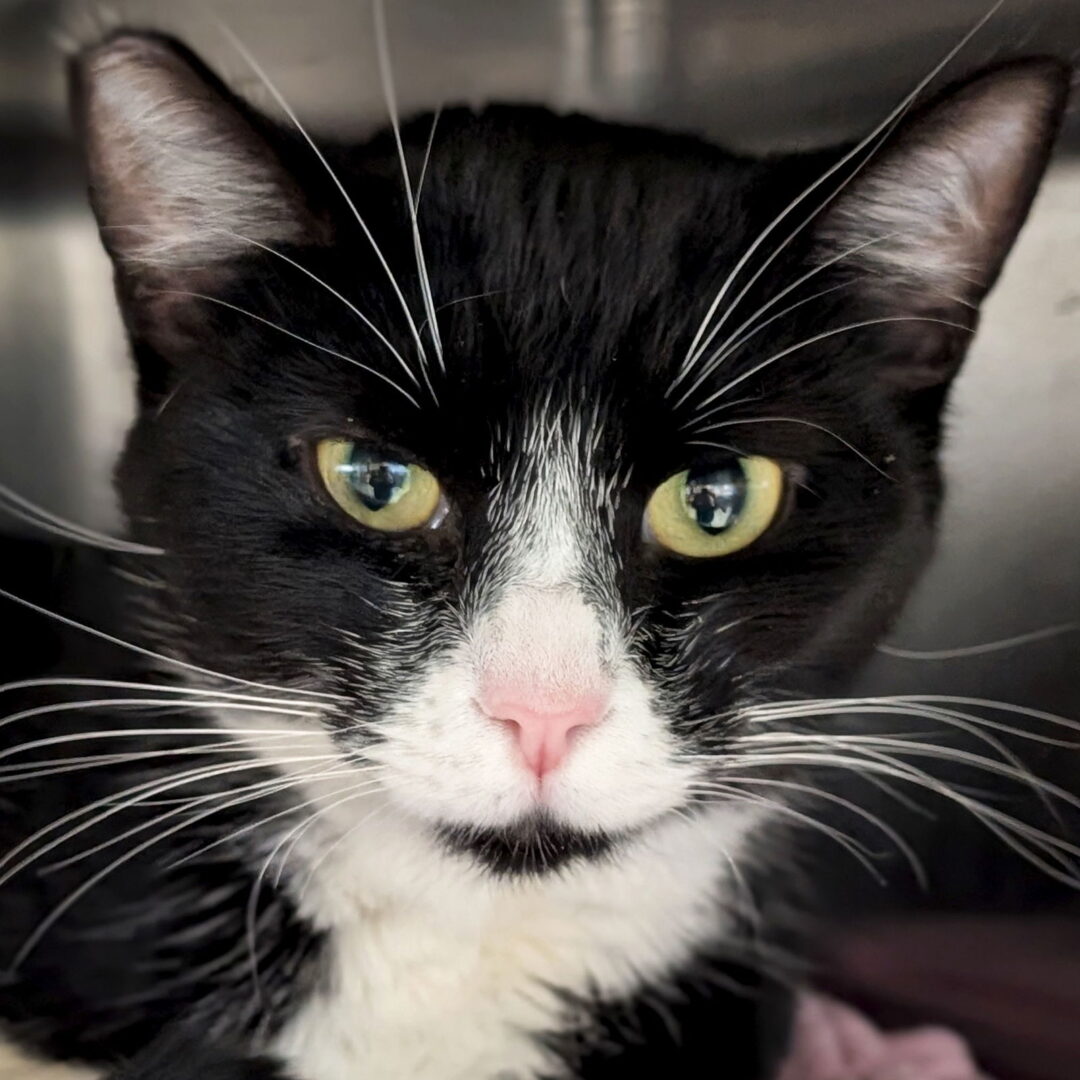 2.5 years old (estimated) Spayed female Did well with a young child Has co-existed peacefully with other cats at the shelter No known experience dogs Sushi is friendly, outgoing, and never shy about asking for pets (or snacks). She loves interacting with people and has made quite the impression. Her favorite game used to be playing “high-five” with a five-year-old visitor at her former shelter. At the shelter, Sushi has co-existed peacefully with other cats, mostly minding her own business and politely backing off when other cats let her know she's invading their space. Curious and adventurous, she loves to explore and is hoping for a loving home where she can share affection freely and keep showing off that social, inquisitive personality. Sushi has been waiting a while to find her family so her adopter can name their own adoption fee when they take her home!