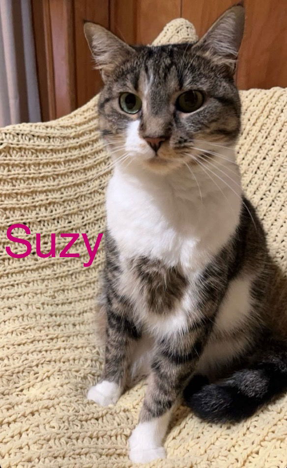 Meet Suzy! Suzy is a beautiful brown and white tabby, who is approximately 4-5 years old. Suzy is quite the princess and would prefer to be your ‘one and only’. This girl loves running in and out of her cat tunnel, playing hide and seek with you. One of the funniest things that Suzy does is summersaults. She loves it when you throw her toys and she’ll chase after them, ending in a tumble. Suzy has recently discovered that she loves catnip sprayed on her scratcher which ends in zoomies. She also likes to play with her toy mice and lamb chops, anything that she can carry around. Suzy loves to lounge on a windowsill and watch the birds and squirrels while she’s catching some sun. Although she’s not a fan of being picked up, she will curl up and cuddle next to you for a nice nap. Suzy would do best in a home with older, respectful children who will understand her boundaries when she needs time alone. Suzy has not been exposed to dogs. Please watch a short video of Suzy: https://www.youtube.com/shorts/MT4MhGwytno. Suzy is playing with her foster family. Please submit our no-obligation application for a meet and greet or to adopt: https://forgottencats.org/adoption-application/. Thank you! (Foster: Chris P.)