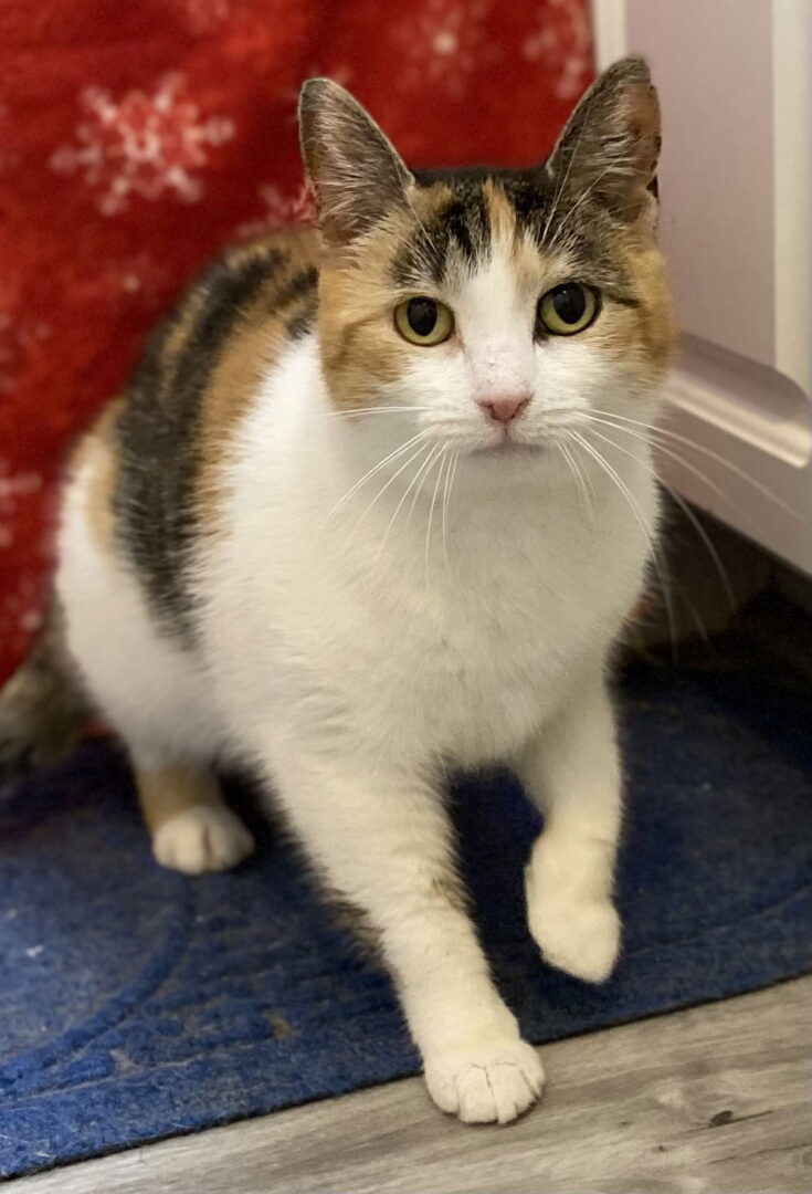 Swiss Miss's rescue story: Swiss Miss was born around April 2023. She was one of many cats rescued following a fire at a mobile home park. She is currently living at a foster home in York, PA. Swiss Miss's personality: You know how hot chocolate is sometimes called a hug in a mug? Well how about the feline version of that ? Swiss Miss is an endearing petite calico with a sweet personality. She adores people and enjoys being pet. She will arch her back and roll over onto her side, looking up at you to get your attention. Swiss Miss enjoys playing with toys and gets along well with other cats. Her adoption donation is $115 and includes age-appropriate vaccines, dewormer, flea treatment, Felv/FIV testing, microchip, and spay. If you would like more information on Swiss Miss, please contact lovingcarecatrescue@gmail.com. If you would like to fill out an online application, please visit https://lovingcarecatrescue.org/adopt/adoption-application/ Please note: LCCR does not allow our adopted cats and kittens to be declawed. All adopted kitties are to be kept as indoor-only pets.If you are interested in adopting this kitty, please fill out the online application at https://alovingcarecatrescue.org/adoptionapplication.html