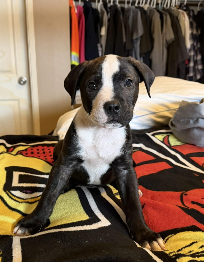 See Sylvester’s HomepageGo to our official websiteYou can fill out an adoption application online on our official website.This animal is in foster care, and details are based on foster observations and may change.Sylvester is an approximately 3-month-old male Pit Bull mix puppy with tons of personality and energy. He’s expected to be medium-sized, with a short black coat, brindle accents, and a white chest and face stripe. He’s playful, affectionate, and loves being close to his people. Sylvester does well with cats and dogs of all sizes and could also be happy as an only pet. He’s still learning puppy manners and loves to chew, so a home without small children is recommended. He’s doing well with house training, enjoys exploring, and will need a secure fenced yard. With continued training and guidance, he’s going to grow into a great dog — and he’s already 100% a good boy. Adoption applications are reviewed based on the best fit for the animal, not on a first-come, first-served basis. Submitting an application does not guarantee adoption. If you believe this animal may be a good match for your home, we encourage you to apply.