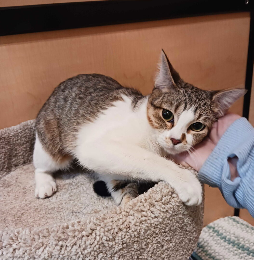 Hi there! I'm Taffy, a sweet brown tabby and white girl, and I'm on the lookout for my forever home. I'm a little shy at first, so I might need some time to get comfortable with you. But don't worry—once I warm up, I promise to be your faithful lovebug! I just need a patient friend who can give me the time I need to come out of my shell. When I do, I can't wait to be your cuddly companion and share all my purrs with you. Let's make some wonderful memories together! For more information about me, please email info@frastx.org