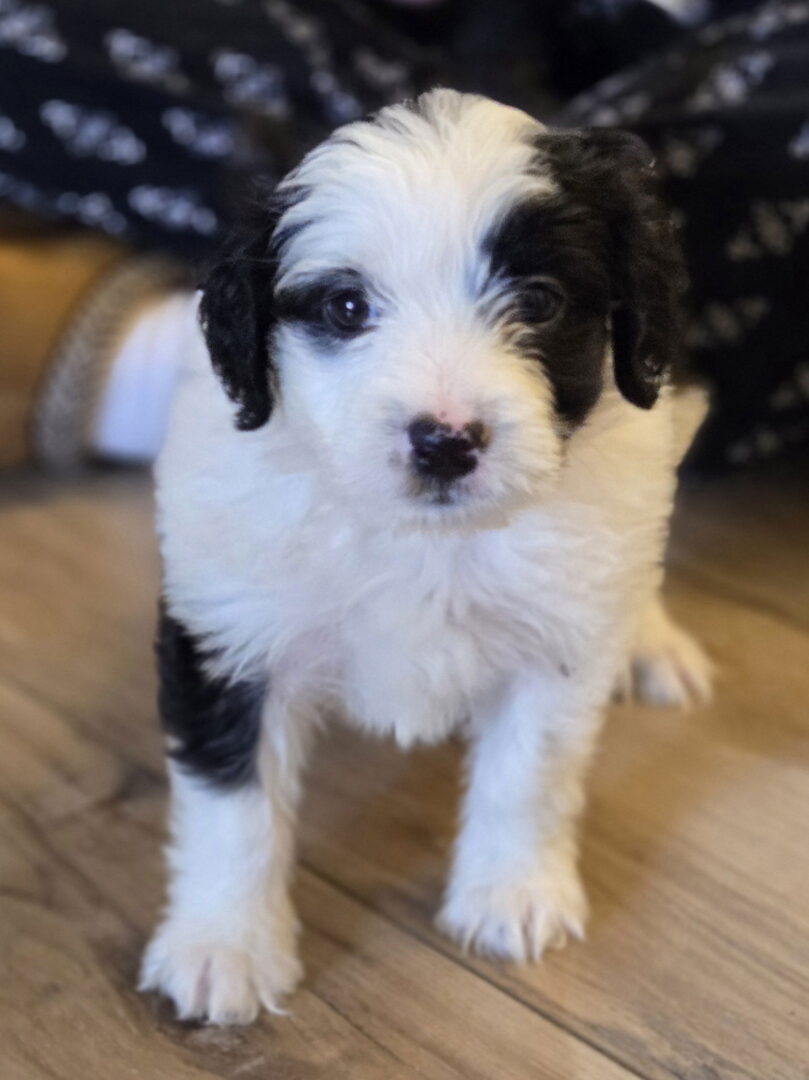 I am part of a litter of 6 pups. My mama had mastitis so my foster began bottle feeding me. I am now on wet and dry puppy food and ready for my forever family. My mama is a Maltese and my dad is a mini Australian Shepherd so that makes me a Aussietees. I will be a small to medium breed. I to potty on the potty pad in my crate and ready to find my forever home.