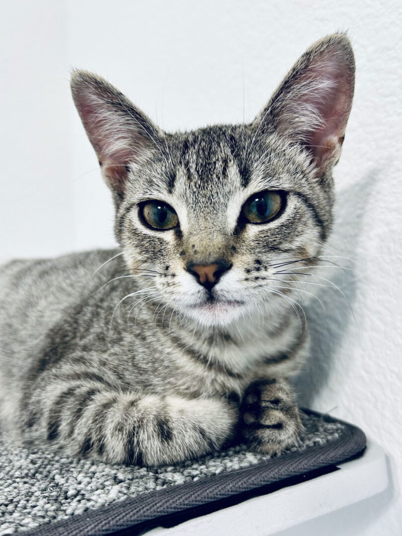 All of our cats are current on vaccines, combo tested (FIV/FELV) , spayed/neutered, microchipped, given rabies vaccine as age appropriate, flea treatment and dewormer as needed Silvery Gray Tabby KittenTaffy Female ID# JTW-138-24 DOB 8/26/2024 Taffy is a beautiful, petite kitten. She is silvery gray with salt-n-pepper body and darker stripes on her legs and tail. She has a stripe on her chest that looks like a necklace. The M on Taffy's forehead looks like a crown, which is fitting for the sweet princess she is. Taffy was found in the street with her siblings on an extremely hot day in August. Cat Matcher's rescued her and took her to our volunteer that bottle feeds fur babies. She was strong-willed and had a desire to survive and thrive. When Taffy was weaned she went to her second foster home to prepare for adoption by getting spayed and age appropriate kitten vaccines. On the first day at her new home, Taffy was very shy, but within one day she had acclimated to her new surrounding and became one of the friendliest of the foster bunch. Taffy loves human attention and interaction. She loves to be held and pet and she purrs non-stop. Taffy enjoys playing with toys, wrestling with the other kittens and also has enjoyed the company of a small dog. Taffy would love to be adopted with her sister Faith however, would also be happy in a home with other cats or kittens to play with. Taffy will certainly fill your home with JOY! **Want to adopt? Get started here: https://catmatchers.org/adoptions/adoption_application_page/ **Do you or someone you know want to help in saving cats' lives? Become a Foster Parent! We are ALWAYS looking for more people to become qualified Foster Parents. For more information on the Foster Program or helping in other ways, click here: https://catmatchers.org/volunteer/ You CAN make a difference!!!! **Not quite ready to adopt, but would like to donate to the care of this or other animals during their temporary stay with Cat Matchers? Visit this link: https://catmatchers.org/donate/ Follow us on Facebook, Instagram, Twitter: @CatMatchers