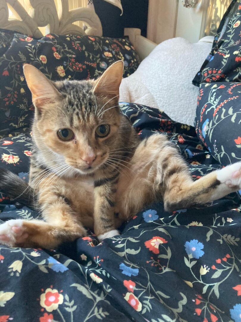 Tako. 8-12 months old. FS DSH. Calico/tabby? She’s everything.. Kid/cat/dog friendly. Extremely affectionate with people. Kid-, Dog- and Cat Friendly!!! Hi! I’m Takoyaki, and my foster parents call me Tako! I’m an affectionate and rambunctious young lady, who did not let my broken leg slow me down! My time at ACCT was running short. Luckily for me, a nice lady saw me and wanted to take me home with her, shattered right femur and all! And after assessments by multiple surgeons, it turned out that my leg did not need to be amputated. It could heal on its own, and I would be left with a minor limp. I love people, dogs, and other cats in that order. My biggest flaw is my love for human food….I will break into anything I can for a bite of your food. I am really good at playing by myself, in fact so much so, that all string toys must be hidden overnight as I tried to amputate my left leg with a wand toy on my first night in foster care. I like to use my litter box properly, and I’m already gentle when playing with others. Her foster said, ‘Leg’s all healed, wouldn’t recommend super high jumps for a few more months, but she’s good to go. Yes, friendly with kids; yes, friendly with dogs, I’ll try to get some pics of her with my 85lb American bulldog..they’re very cute together.’ From Tako: DO NOT ADOPT ME IF YOU LIKE TO HAVE A COLD AND EMPTY LAP. Do YOU need a lap warmer? Please ask to meet Tako! She is now playing and keeping laps warm in our Brandywine PetSmart adoption center. Please submit our no-obligation Adoption Application for a meet and greet or to adopt: https://forgottencats.org/adoption-application/. Thank you! (Foster: Ellen B.)