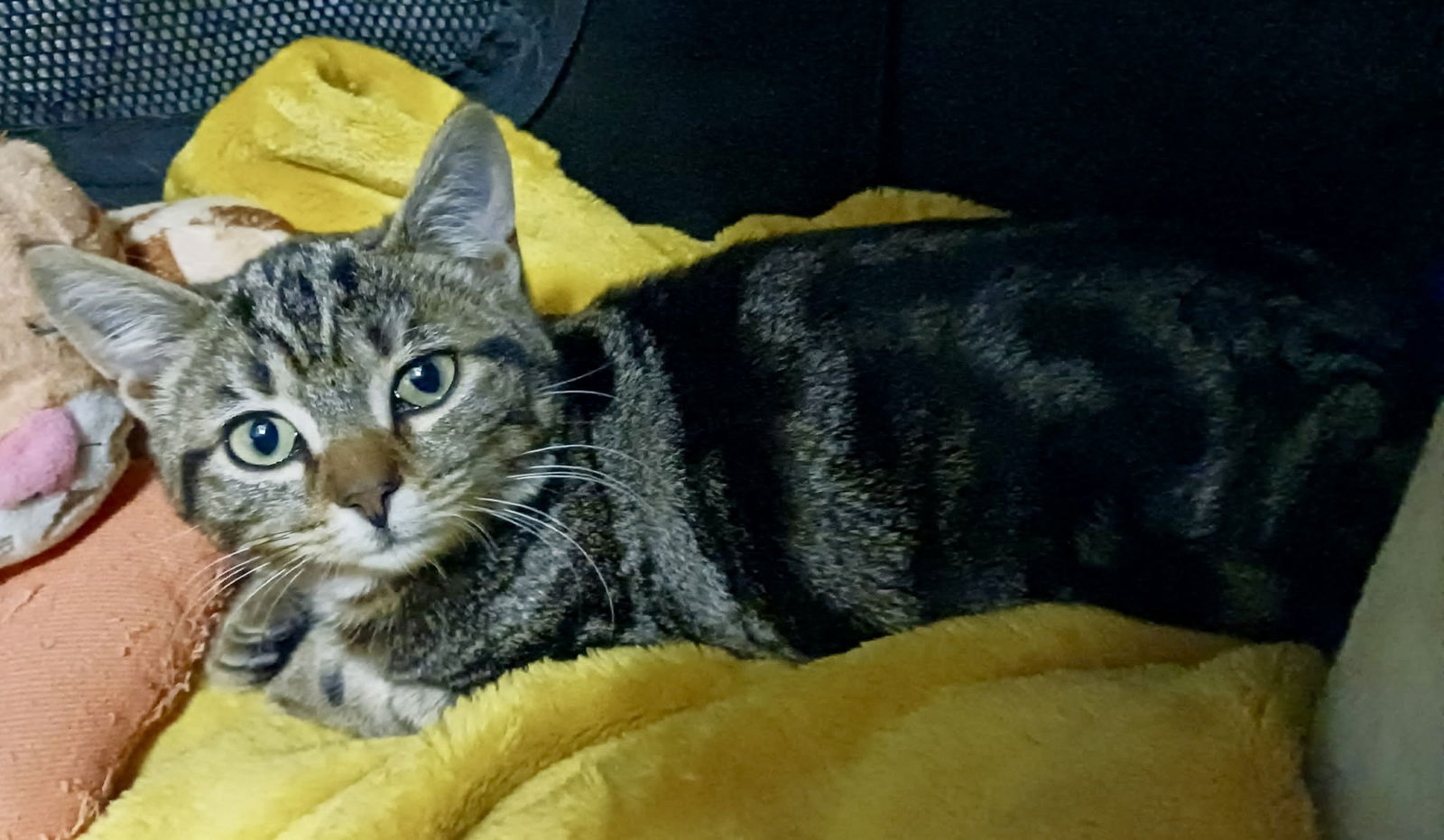 Talia is a sweet and shy girl with beautiful grey and black stripes. She is calm and gentle but still love playing hide and seek with her siblings. She will cuddle and turn on her side for belly pets when she feels safe but is still getting used to kisses ♡ ——————————————————————————————————- All of our foster kitties are raised in foster homes, are up to date on vaccines for their size, spayed/neutered, FELV/FIV tested and microchipped. Interested in adopting? Fill out and adoption application here: https://www.sprkittycatshack.org/adoptions