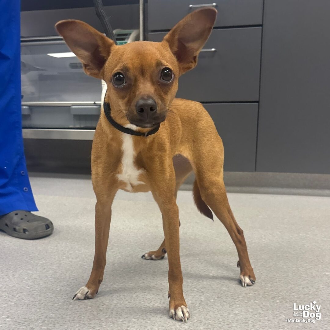 small young girl seeking happily ever after! TAMMY NEEDS A FOSTER OR FOREVER HOME!!!! Name: Tammy Best Guess for Breed: Chihuahua mix Best Guess for Age: 8 months as of January 2026 SEX: Female Approximate Weight: 11 lbs as of 12/30/25 – she likely has a bit more to grow, Gets Along With: Other dogs! We haven’t seen her with cats or kids but we are happy to discuss integration techniques with any potential adopters! Currently Living at: South Carolina shelter – needs a foster or forever home in the DC area to get up here! Tammy is Looking For: Her forever home! This sweet young girl is not very long out of puppyhood, and she has so much she wants to see and do! Sniffy walks, romps in parks, all the adventures her new humans can dream up – yes, please! (Bonus: At her size, she’s highly portable over giant boulders and similar obstacles!). Snuggles are high on her wish list as well. But you know what she wants most of all? To be safe and loved for all her days, to know where she belongs. What do you say? Is thar by your side? What My Foster Says About Me: We will update this once she has spent time in foster care. Lucky Dog cannot guarantee any dog is housebroken. All of our dogs are working on their crate training. TO ADOPT: The adoption fee for this dog is $460, which includes the cost of routine vetting, including vaccinations and spay/neuter. If you are interested in adopting, please complete the Adoption Questionnaire online at bit.ly/adoptaluckydog . Lucky Dog Animal Rescue does our best to provide accurate information about the dogs we have for adoption. That said, we cannot make any guarantees about age, breed or temperament. Thank you for contacting Lucky Dog Animal Rescue and helping to save a life! Please visit us online at www.luckydoganimalrescue.org . BE A FOSTER!!! Fosters make it possible for Lucky Dog Animal Rescue to save and care for homeless and abandoned dogs! To learn about fostering, please contact fostering@luckydoganimalrescue.org! BE A SPONSOR!!!! Sponsors help Lucky Dog support the many dogs we save. To learn more about sponsorship, please contact info@luckydoganimalrescue.org !