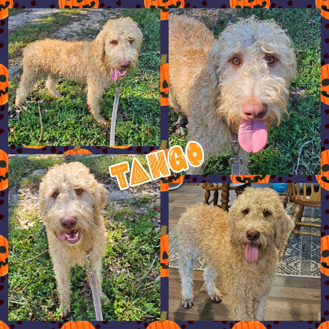 Meet Tango! Breed: standard poodle/vizsla mix. Age: est 10 months, est birthdate 2/2024. Weight: est 49lbs, we believe she will be about 55ish lbs when full grown. Training: crate and leash trained, sometimes need encouragement on the leash. He is doing well with supervised house training, but will need continued guidance as he has never lived in a home before now. Good with other dogs/cats? Yes, he LOVES other dogs. In fact, we believe he would do best with another canine companion in his new home. He doesn’t mind cats. Good with adults/kids? Yes. Personality: He is a little shy at first, but once she warms up to you, he will follow you around and want your attention. He is playful with other dogs. Reason for rescue: breeder release, retiring. Tango would do best with a fenced yard and another dog in his home to show him the ropes. He has never known life without another dog, and he really looks to them for guidance. He has a lot of potential. He needs time, love, guidance, and patience to become the wonderful companion we know he is. Tango is neutered, microchipped, heartworm negative, and current on vaccinations and preventatives. If interested in adding this sweet boy to your family, please message for an adoption application! Adoption fee: $300.