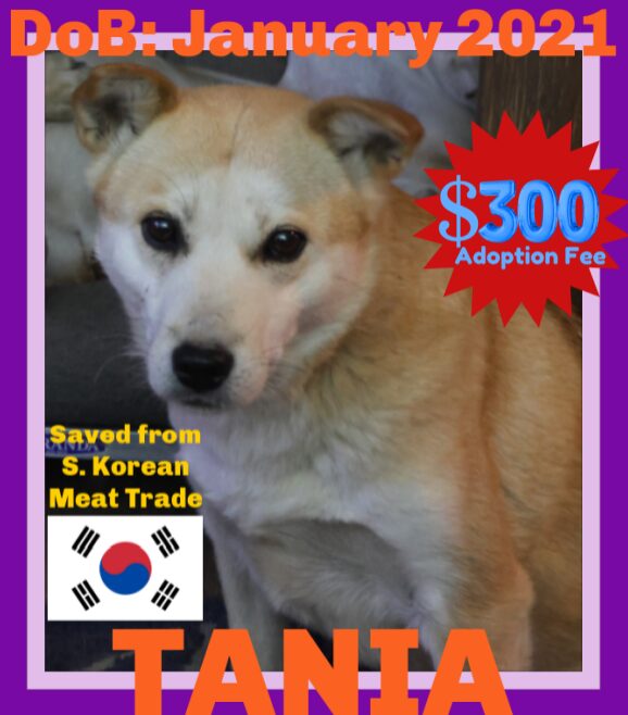 See TANIA’s HomepageGo to our official websiteYou can fill out an adoption application online on our official website. TANIA & TIARA were saved by SAVE KOREAN DOGS from Tobong Dog Slaughterhouse on June 29th 2022 from a horrendous and painful evil death. She arrived in the US on 2nd November 2023. TANIA is spayed, rabies, core vaccines, heartworm and tick tested negative, she is on monthly preventatives, de-wormed and microchipped. She has an estimated date of birth of 21 January 2021 and weighs around 40 pounds. She is a Jindo mix breed dog, with the Jindo being a national treasure. Tania is a sweet gentle girl who is in need of a home that is going to go slow and show her love and give her the security she needs, whilst going out on walks and adventures and helping her get familiar with the strange environment, strange noises and smells that are so very different to south Korea. Unfortunately Tania's sister Tiara passed away in January 2025 and so Tania is alone without her sister, but here at the rescue with the house pack. TAnia is shy and nervous which is to be expected with all she has endured so we are looking for a nice chilled out family who enjoys walks and adventures, but also chilling on the coach. Tania is great with other dogs, having lived with 15 here at the rescue and has not been phased by the cats, although the cats do tend to stay out of the way. Please be sure to follow our Facebook page for regular updates as we do not always have the time to update the website and adoption sites on all the individual dogs. We also post video's on our YouTube channel where you can see the dogs personalities, get a better idea of age and looks also. We take a lot of pictures and videos and don't always have the time to post them on the dogs individual webpage and adoption site, so we ask that you go to the rescue YouTube channel and photo albums on our Facebook page to see a LOT of pictures and videos. Interested families are required to complete our application process and once approved schedule an appointment to come to the rescue to meet and take home their new best friend. Our process takes 1-2 days as long as we are able to talk to references, so be prepared to be approved (hopefully) to adopt within a few days of submitting the adoption application. https://giveadogahome-rescue.rescuegroups.org/forms/form?formid=5838 Click here to watch a video of TANIA.