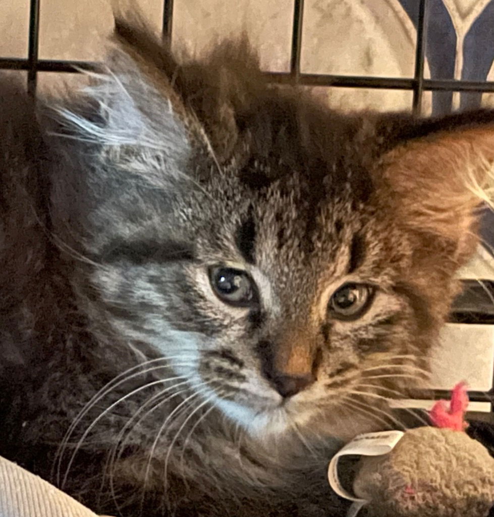 Tank is a timid guy who just lost his mom, who was hit by a car. Poor thing is slowly adjusting to indoor life. We want to make sure he and his siblings no long suffer outside. Apply at www.lakehavenrescue.org