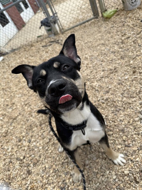 Tanner (A567584) — 4Y M — American Bulldog came in with Rex A567583Tanner is a striking, athletic boy with a slender build and a curly tail—he almost gives off Shepherd/Husky vibes! He appears to be housebroken, going potty multiple times as soon as he got outside, and clearly enjoys the chance to stretch his legs.He’s treat-motivated and takes treats very gently. On leash, Tanner has some excited energy but doesn’t pull hard—he’s responsive and settles himself when he feels guidance from his handler. He may already have some training under his belt; when asked to sit, he offered his paw, showing he’s eager to engage and please.Tanner is sweet-natured, curious, and very in tune with his surroundings. When passing another dog in the pen, he became a bit overstimulated and unsure, raising his hackles and showing some tension. Because of this, it’s important to check out his playgroup video to better understand his dog-to-dog interactions.Overall, Tanner is an affectionate, intelligent boy who just needs an outlet for his energy and a little guidance to shine.Please enjoy reel: https://www.instagram.com/reels/DWXniSQEY5s/
