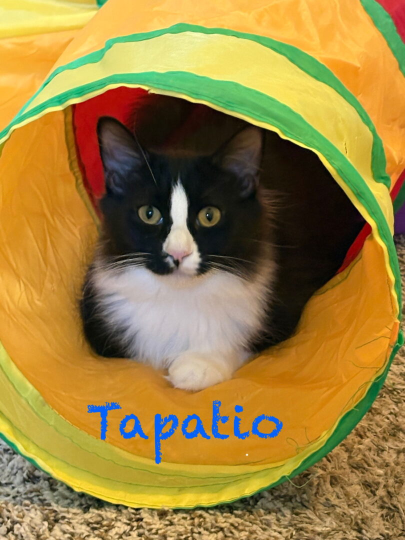 Meet Tapatio! He is mellow, sweet and shy. He will take a little bit to warm up but it will be worth it once he does. Play tunnels and laying in the sunlight are his favorite. He is always chasing or cuddling with his cat friends – especially his sister Tabasco, they would love to find a forever home together. He is Neutered, dewormed, vaccinated, microchipped and tested negative for FELV and FIV. His adoption fee is $250.00.