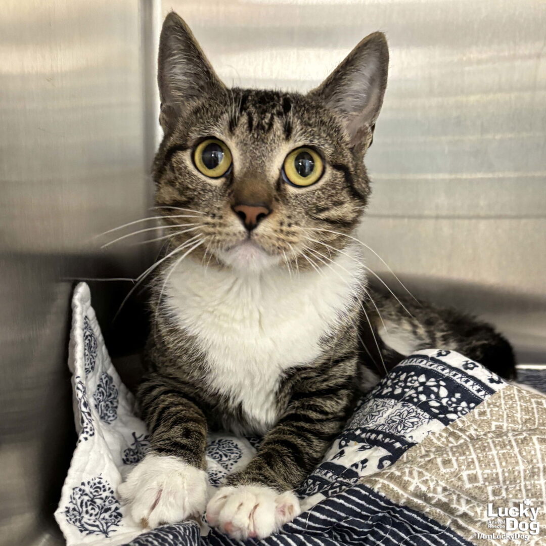 Please contact Jessie Cheng (jessie.cheng@luckydoganimalrescue.org) for more information about this pet.Beautiful girl needs a forever home!TASHI NEEDS A FOREVER HOME!!!! Name: Tashi Best Guess for Breed: Domestic Short Hair Best Guess for Age: 1.5 years DOB: 8/18/23 Sex: Female Approximate Weight: 5lbs 5oz Coloring: Brown Tabby Type of Hair: Short Gets Along With: With proper integration, Tashi will likely get along with other cats, dogs & kids! We’re happy to help with tips & tricks. Currently Living at: Foster home in the DC area! I am Looking For: My loving forever family! Hi! I’m Tashi, and I am a sweet kitty! I won’t ask for much- just some love, cuddles and lots of toys so I can run and play and be myself. What My Foster Says About Me: Coming soon! TO ADOPT: The adoption fee for this cat is $200 ($350 for two cats adopted together), which includes the cost of routine vetting. If you are interested in adopting, please complete the Adoption Questionnaire online at bit.ly/adoptaluckycat Lucky Dog Animal Rescue does our best to provide accurate information about the cats we have for adoption. That said, we cannot make any guarantees about age, breed or temperament. Thank you for contacting Lucky Dog Animal Rescue and helping to save a life! Please visit us online at www.luckydoganimalrescue.org . BE A FOSTER!!! Fosters make it possible for Lucky Dog Animal Rescue to save and care for homeless and abandoned dogs! To learn about fostering, please contact fostering@luckydoganimalrescue.org BE A SPONSOR!!!! Sponsors help Lucky Dog support the many dogs we save. To learn more about sponsorship, please contact info@luckydoganimalrescue.org!
