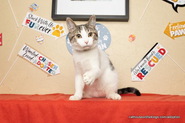 Tater is an adventurous little guy with a playful spirit that will keep you entertained for hours. He loves to explore every nook and cranny of the house, always curious about what’s just around the corner. Tater is also fantastic with other pets and people—small dogs, other cats, and children are all his friends. If you’re looking for a kitten who’ll keep things lively and full of fun, Tater’s your guy! Please note:Tater is ok with dogs and small children For more information & an online application go to https://www.cathouseonthekings.com/adoption/cat.php?id=26702&ts=1761721409&src=rg