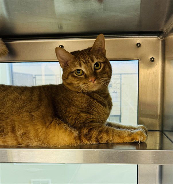 Adoption Fee: $10 Includes: Spay/Neuter, Rabies, Microchip, FVRCP, Pyrantel, Age: 2 year oldWeight: 10 lbsIf you are interested in meeting and adopting or have any questions please call the Lee’s Summit Animal Shelter at 816-969-1640 to schedule an appointment. (Mon – Fri 10 a.m. – 5 p.m., Weekends 10 a.m. – 2 p.m.)***BEHAVIOR TEST***Dog Test: (Good with Dogs) Tay met dogs here at the shelter and doesn’t seem care about them. Cat Test: (Good with Cats) Tay doesn’t mind other cats here at the shelterKid Test: (Okay with Kids) Tay would be ok with a kid. Litter Box Trained:(Uses Litter Box) Tay uses her litter box Energy Level: (Medium) Tay is a chunky, lovable orange tabby who has truly mastered the art of relaxation. She’s a super chill girl with low energy, perfectly content to spend her days lounging around and napping in the coziest spots she can find. Tay isn’t one for running around or playing too much—she’s more interested in being a professional couch potato. If you’re looking for a laid-back, easygoing companion to relax with, Tay is the perfect girl to claim a spot on your couch and in your heart!