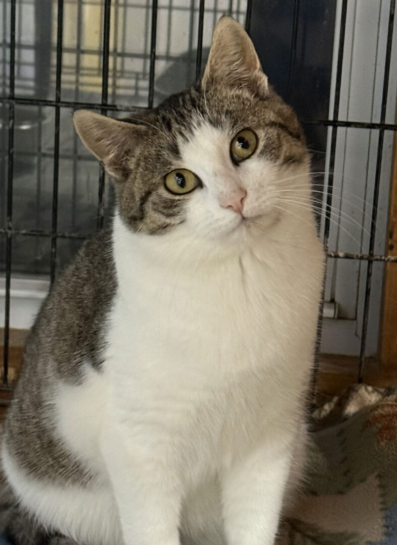 Meet Tessa! Tessa is a young white and gray tabby girl with the sweetest personality to match her adorable looks. This friendly little lady loves people and will happily greet you with gentle head bumps, purrs, and playful curiosity. Tessa has a fun, affectionate nature—she enjoys interactive playtime, chasing toys, and then settling in for cozy cuddle sessions. She’s confident, social, and would do great in a home where she can be part of the action and soak up attention. Whether she’s batting at a feather wand or lounging in a sunny window, Tessa brings joy wherever she goes. She is great with other cats, dogs and would love to grow up with children! If you’re looking for a loving companion who’s equal parts playful and snuggly, Tessa could be your perfect match. She’s ready to find a forever home where she can share her big heart and happy spirit. Come meet Tessa and fall in love! Please request an application at Adoptions@LaManchaAnimalRescue.org Attn: Laurie for Tessa