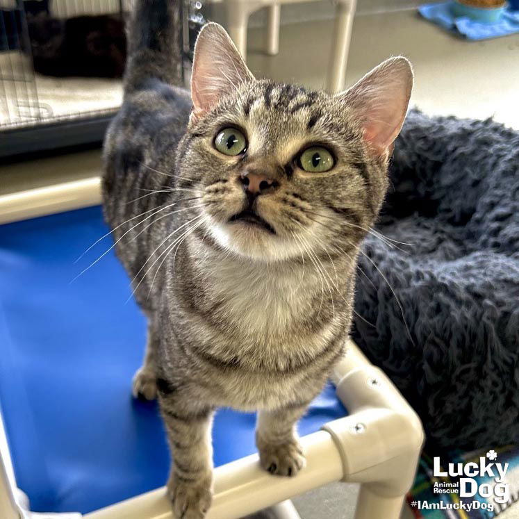 Please contact Lauren McCarty (laurenmc@luckydoganimalrescue.org) for more information about this pet.Handsome Theodore needs a forever home!THEODORE NEEDS A FOREVER HOME!!!! Come meet Theodore and other great adoptable cats this Sunday (03/30) from 12-3 pm at the PetSmart in Falls Church, VA (6100A Arlington Blvd, Falls Church, VA 22044)! Name: Theodore Best Guess for Breed: Domestic Short Hair Best Guess for Age: 9 months (Est. DOB: 06/04/2024) Sex: Male Approximate Weight: 5.75lbs Coloring: Brown Tabby Type of Hair: Short Litter: Alvin & Simon & Theodore Gets Along With: With proper integration, Theodore will likely get along with other cats, dogs & kids! We’re happy to help with tips & tricks. Currently Living at: foster in the DC area I am Looking For: My loving forever family! Hi! I’m Theodore, and I am a sweet kitty! I won’t ask for much- just some love, cuddles and lots of toys so I can run and play and be myself. What My Foster Says About Me: Coming soon! What the Shelter Says About Me: Hi hi hi! I’m Theodore, and I have exactly zero chill! One second, I’m zooming across the room like a tiny rocket, and the next, I’m rolling around on the floor, belly up, looking ridiculously adorable. Playing with my brothers, Alvin and Simon, is my favorite thing in the world—wrestling, chasing, and zooming at top speed are my specialties. If there’s a toy in sight, consider it mine (at least until I get distracted by something even more exciting… like my own tail).But don’t let my wild energy fool you—I’m also a total sweetheart. After a long day of zoomies, I love curling up for cuddles and purring like a little motor. I’ve got the perfect mix of playful chaos and lovable goofiness, and I’m pretty sure I’d make the best addition to your home. So, what do you say? Want to adopt a tiny ball of energy who will keep you entertained and melt your heart? Because I volunteer as tribute! TO ADOPT: The adoption fee for this cat is $200 ($350 for two cats adopted together), which includes the cost of routine vetting. If you are interested in adopting, please complete the Adoption Questionnaire online at bit.ly/adoptaluckycat Lucky Dog Animal Rescue does our best to provide accurate information about the cats we have for adoption. That said, we cannot make any guarantees about age, breed or temperament. Thank you for contacting Lucky Dog Animal Rescue and helping to save a life! Please visit us online at www.luckydoganimalrescue.org . BE A FOSTER!!! Fosters make it possible for Lucky Dog Animal Rescue to save and care for homeless and abandoned dogs! To learn about fostering, please contact fostering@luckydoganimalrescue.org BE A SPONSOR!!!! Sponsors help Lucky Dog support the many dogs we save. To learn more about sponsorship, please contact info@luckydoganimalrescue.org!
