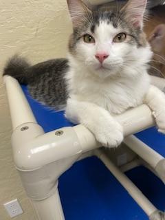 One look at his sweet little gaze and it’s easy to understand why his very experienced foster mom calls Theodore a “sweetheart kitten”! He’s playfully bouncy with his darling siblings, especially with toys to bat and chase, and is full of lovebug affection for his people. His handsome coat of ivory highlighted with deep charcoal and dramatic black is extra dense and fuzzy wuzzy, making him as picture-perfect as he is lovable. He’s an adorable little guy from his rosy nose to his velvety toes, with a personality that will make him a cherished addition in a sweet forever family. Could Theodore be the boy you’ve been waiting to adore? Please note:Theodore is shown as a Maine Coon Mix / Tabby / Tabby – Black based solely on his appearance. We rarely take in purebred animals, so virtually all of them are a mix of several breeds. Do not make an adoption decision based only on our breed designation, especially if you are concerned about allergies. For more information & an online application go to https://www.cathouseonthekings.com/adoption/cat.php?id=26863&ts=1761721409&src=rg