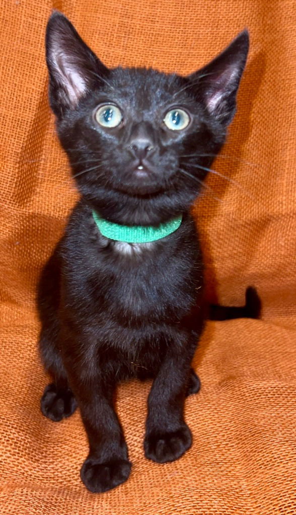 Thing is…..crazy, nuts, and probably clinically insane (like all his 6 siblings). He wants to explore and play with everything in sight. He does not know what boundaries are and will climb up you like a tree especially when he wants his wet cat food or attention. He zooms around the house and scares himself causing lots of arched backs and floofy tails. The iconic Halloween cat look! Feather wands, tunnels and pretty much any other toy will keep him busy for hours. He is dramatic and crazy, yet loves to cuddle and climb all over you for attention. People are his favorite and loves to follow us around. If you have friends over, Thing will be there front and center to join in on the fun. He needs to be adopted with one of his Adams Family siblings or into a home with another young/playful cat. If you are interested in adopting a CAWS pet, please fill out an online application at https://caws.org/adoption-application