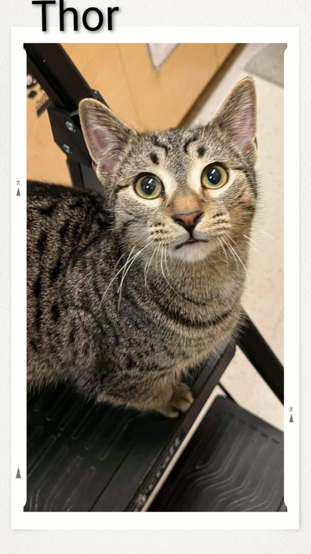 THOR – DSH, male, neutered, grey-brown tabby, DOB July 27/25