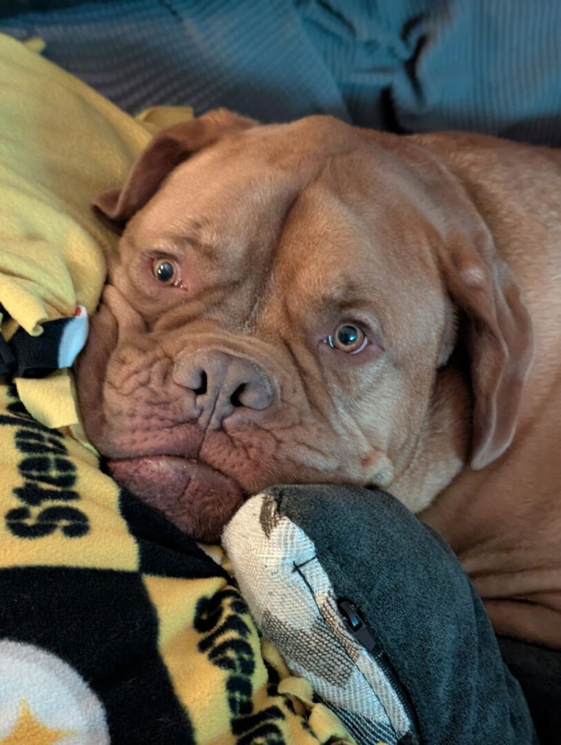 Age:5-1/2 Weight: 145 Location: Hagerstown, MD Nicknames: Tiggy Tiggy Tiger, Bubba Good with other dogs?: Yes. Tiger was an owner surrender from a family that had other small dogs. So far in his foster home, he hasn't met any other dogs as he's the only dog currently there. He did see other dogs at the dog store and was not reactive or cared at all about them. Good with cats? unknown, will not be adopted to a home with a cat Good with children? OK for kids over: 10 (due to his size, but he is very gentle) Activity Preference: Needs in-house activities, Low maintenance overall but needs quality outside time., Will go with the flow, Champion couch potato, "Energy, do you mean like walking to my food bowl?" IQ: Has some shining moments Tiger's favorite things: Tiger loves car rides, tennis balls, and most toys (soft, chewy, hard) and sometimes a walk (he only likes walks in the morning when it's dark and not when there is wind) Tiger is good at: meeting people, staying in a crate, behaving in the house, going for car rides, making me feel safe, walking on a leash, following commands Ideal home: someone at home most of the day, a fenced yard Training Needs: Health issues: None Meet Tiger Tiger is a perfect gentleman! He is a wonderful dog in all aspects! He does not have any bad habits, just likes his toys, his bed and being a big couch potato. Tiger just goes with the flow and loves to watch his humans and look out the window at the neighborhood. He loves to come along with you on any car ride and just requests his head out the window. He lived with other dogs and kids previously. He doesn't seem too crazy about the neighborhood cats, but the squirrels don't bother him. He will make a perfect addition to your home! PLEASE READ: Adopters will not be considered without completing an application. Please visit www.AmericanBulldogRescue.org to apply! Remember – Adoption is always the best option! If you can't help by adopting a homeless pet, please consider making a tax-deductible donation to American Bulldog Rescue, 4 Terry Drive, Suite 1D Newtown, PA 18940 or paypal AmericanBulldogRescue@verizon.net. We cannot place dogs in homes with children under 10 unless that dog has lived with kids or is in a foster home with kids. Thank you. To be considered for adoption, you must apply using our free, online application. Our dogs are fostered in our volunteers’ homes, not in a central shelter/location. Only approved applicants are put into contact with the foster family to setup a meeting with the foster dog. Visit our Adoption Policies web page for more information and a link to our application: http://americanbulldogrescue.org/adoption-policies/.