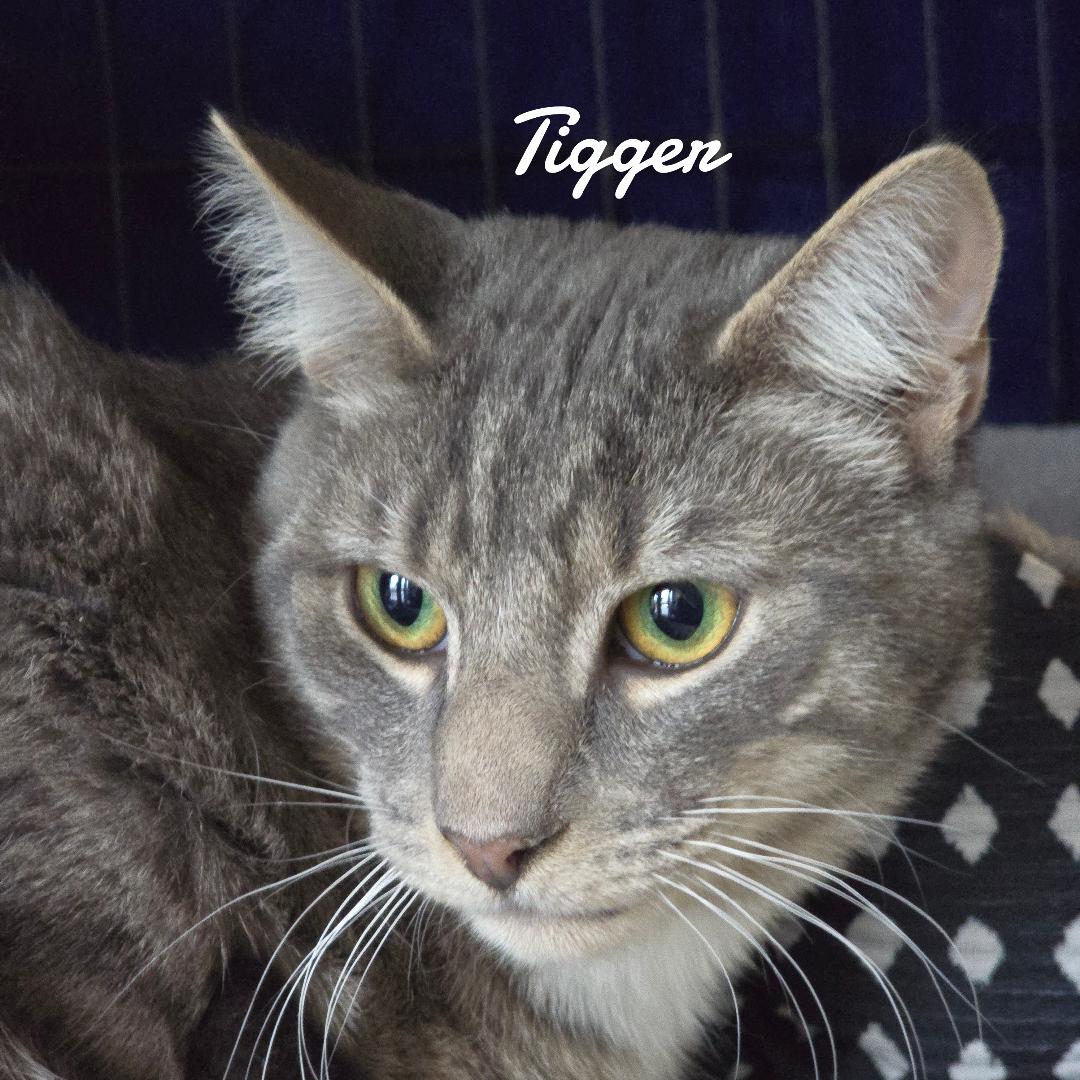 Tigger is a sweet 10-month-old male He along with another young male were surrendered because they were unneutered and there were unspayed females in the home. Tigger is a tad shy as she just arrived and has to get acclimated to the shelter. You can find our online-fillable adoption application by visiting https://animalsforlife.org/feline-adoption-application.