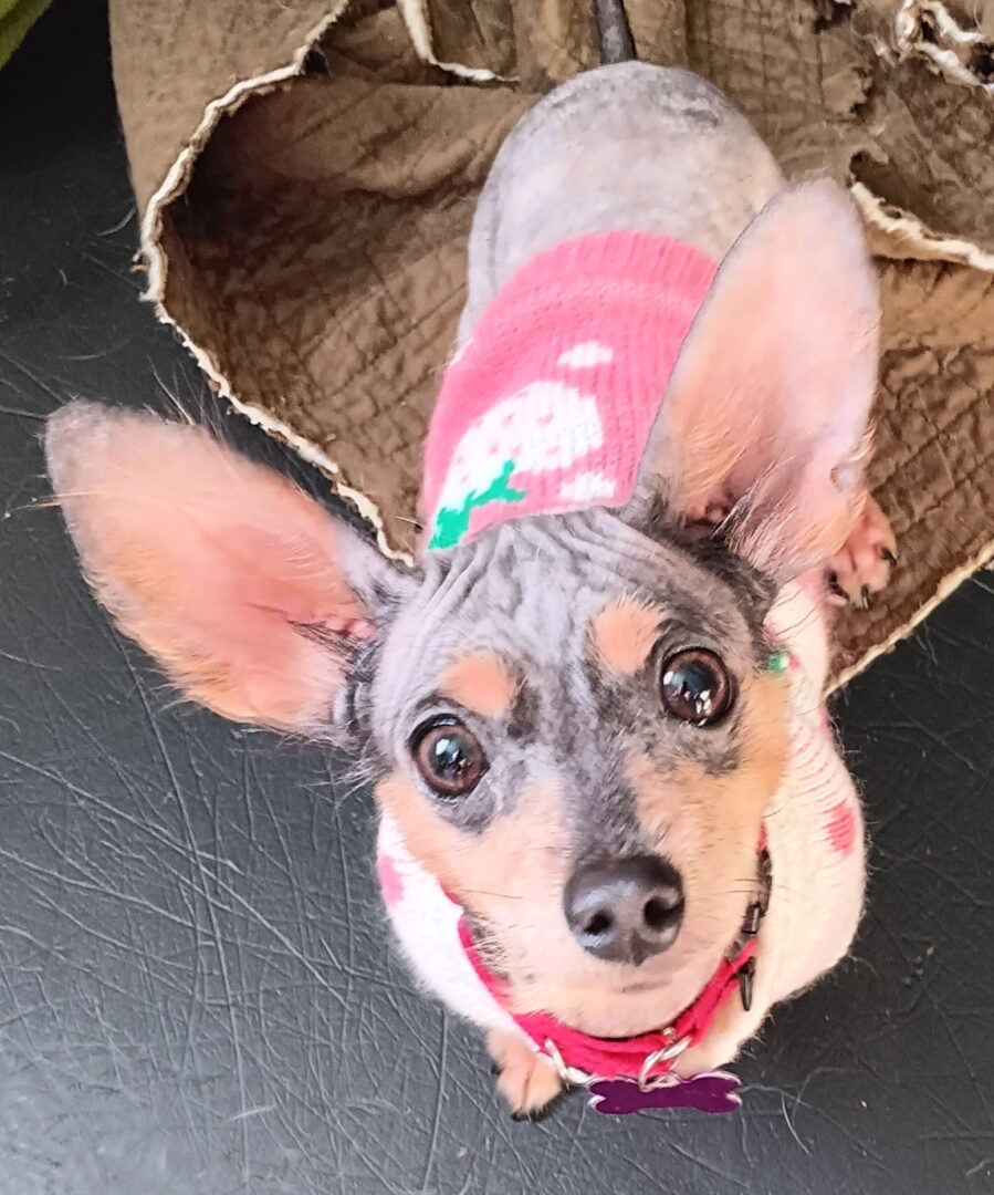 OMG – this teeny Chiweenie is the sweetest little dog ever. Tina is 2 years old and 7 lbs of love and sweetness. Not a scared little fearful, snappy dog at all – super friendly. Tina came to us with pretty much no fur on her back, neck, chest or head. It is now coming in so nicely! For a moment, we were uncertain if she was going to have genetic alopecia, or if the issue was diet and environment related. Since the fur is growing back in so beautifully, clearly it is not alopecia! YAY! She is healthy and playful and good with dogs and cats and respectful, experienced kids. Needs a contained yard, for she is not great on leash and so tiny. Tina is a must meet, for she will steal your heart for sure. ADORABLE! LOVABLE MUTTS ADOPTION CENTER (Pregnant Dog Rescue) is a private, in home, all breed rescue facility. We exist only on the kindness of your donations and adoptions! We pride ourselves on being an HOLISTIC center and feed only holistic foods and various vitamins and supplements to all of our dogs. LOVABLE MUTTS ADOPTION CENTER dogs are well socialized, very friendly, and in wonderful health. We stand by our pups/dogs, and give 10 days for a refund and almost always take our dogs back at any age of their lives (often depends on dog)! LMAC has an application screening process. All applicants are asked to provide vet references, personal references, and a home visit. We pride ourselves in matching up the right dog with the right home. Sometimes this happens quickly and sometimes it might take awhile. We hope you understand and are willing to wait for the perfect pup for your situation. We reserve the right to turn applicants down and to change our mind about a suitable match, for we are only concerned about what is best for our dogs. Also note that we arrange our visiting hours around your schedule, as this is a private, in home facility. We respond to all inquiries promptly, so if you have any trouble sending us an email, or have not heard back from us within 24 hours, please, CONTACT US AGAIN and check your spam! (We all know how emails can be at times!) Our dogs are spayed or neutered (if old enough), up to date on vaccines, wormed, heartworm tested, and free of fleas and ticks. We temperament test our dogs and they are all suitable for many family situations. Our dogs are well mannered, know some basic commands, and are usually housebroken within a week of being with us (if old enough). They are in our family/home situation at this time (not in kennels or crates, although most are crate trained) and are worked with daily. All of our dogs do well with other dogs and many do well with cats. Adoption donations vary with age, breed, vetting, and training of the dog, and range from $250 to $695 (most being $595). (We do not tend to place puppies or small dogs with kids under 6 and reserve the right to match who WE feel would be the best homes for our dogs.)