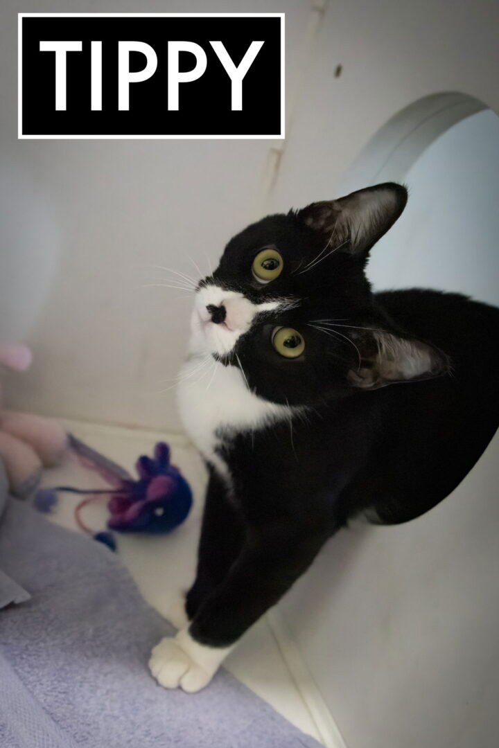 Meet distinguished little cuddle bug Tippy! Tippy has classic beautiful tuxedo markings, but he adds a unique dash of black under his nose. Irresistible! When I visited Tippy, he was thrilled to have a new human friend and he basked in the pets and TLC. Be sure to watch cute Tippy’s video: https://www.youtube.com/shorts/3yDxxUd3p8A . You can see what an affectionate, confident, social boy he is. Could Tippy bring his adorable charm to your home? Please submit our no-obligation Adoption Application for a meet and greet or to adopt: https://forgottencats.org/adoption-application/. Not ready to adopt? Please consider fostering: https://forgottencats.org/foster-a-cat/. Thank you! (Foster: Trainer)