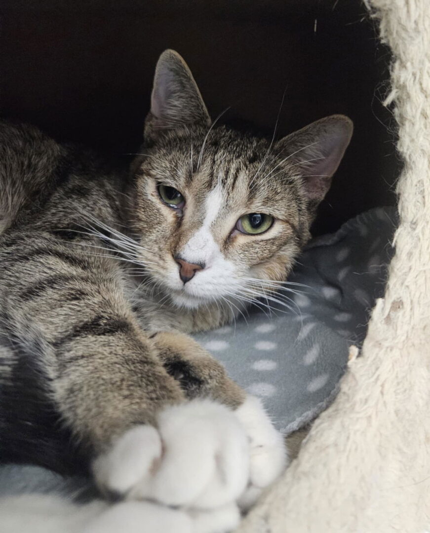 Toby – Male DOB 4/24/2024 Domestic Short Hair – Brown/White Tabby Toby is a shy boy and still taking some time to settle into our quiet room. He will take a little time to settle into his new surroundings and to gain his trust that he isn't going to be harmed. Once he does, he is a very sweet and loving boy. He loves to be petted and will roll over in delight as you pet him. He has a hardy appetite and loves his wet food. He's playful, and social around the other cats, and would need to go home with another friendly kitten, like his BFF Trinity, or home to another young calm, sweet cat. He would do best with no dogs, and no children. Please apply via our easy online application at https://furrr.org/cat-adoption-process/All kitten(s) and cat(s) at FuRRR Feline Rescue are spayed/neutered, up to date on vaccinations for their age, combo tested for FIV/FeLV, microchipped and have a Health Certificate from a licensed NH veterinarian. Our application is available to be completed online at https://furrr.org/cat-adoption-process/ Applying DOES NOT guarantee approval. We hold meet and greets with approved applications only. (Kittens are available for adoption in pairs only unless they are going home to another kitten or young cat under 3) Our policy is strictly NO DECLAWING and INDOOR ONLY. Adoption fees: Kitten to 1 yr – $300 Kitten pairs $550 Adult cat 1+ yr to 8 yr – $200 Adult pairs $350 Cat 8+ – $75
