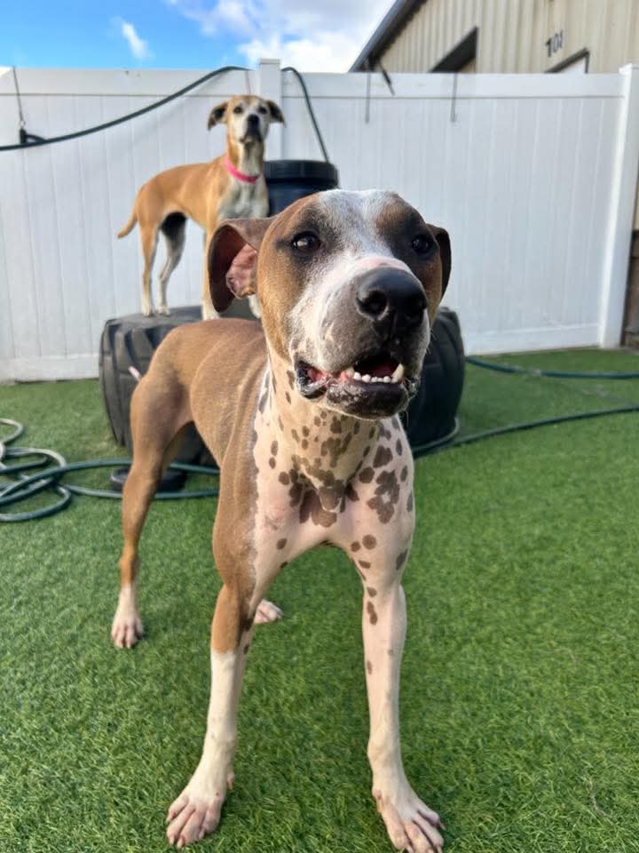 (DOB 09/09/2024) Toby is a young, playful puppy who’s always ready to greet the day with excitement. He’s first in line at the door when the family wakes up, ready to jump into an adventure outside. Toby is an active guy and will thrive in a home where he gets his walks and playtime, especially fetch! He would love to be in a home where someone works from home or is home the majority of the time; Toby is thrilled for the frequent “pop-in and out” breaks to the backyard for a romp, a roll, a run, and just plane fun!He has the added benefit of being CAT, KID, and DOG friendly. So if you have a "full" household then Toby could be a good fit. He likes doggie daycare and romping with his 4-legged friends. Another dog in the home that would be Toby's best bud would be awesome!Although he can be a bit shy at first around new faces, don’t let that fool you. Once Toby feels safe and loved, he’s your loyal, happy boy – wagging his tail and eager for belly rubs. Toby, the playful young chap, needs a nice fenced in yard, another dog or 2 to play with and is happy to join a family with kids and cats, too. His wagging tail and a heart full of play will make any home more joyful!He's a quick learner and already knows commands like “sit” and “wait,” so he's more than ready to impress with his obedience. This little guy loves his meals, enjoying two tasty servings a day with a few delicious treats sprinkled in between which makes training even easier.He also loves tagging along for any car rides you are willing to take him on; he is a champ on the road and will make a great companion. He’s also a pro at bedtime, peacefully snoozing away in his crate after a day filled with fun and playtime. So if you are looking for love, looking for fun, looking for a happy, active dog, then Toby could be your guy!!As part of Toby’s $300 adoption fee, he is neutered, microchipped, up to date on age-appropriate vaccines, and current on his monthly flea/tick and heartworm preventatives. If you have questions about this sweet little boy, you can email Dogteam@pawsforlifenc.org. If you wish to adopt Toby, you can fill in an online application for him under the Adopt a Pet Tab on our website: www.pawsforlifenc.org.
