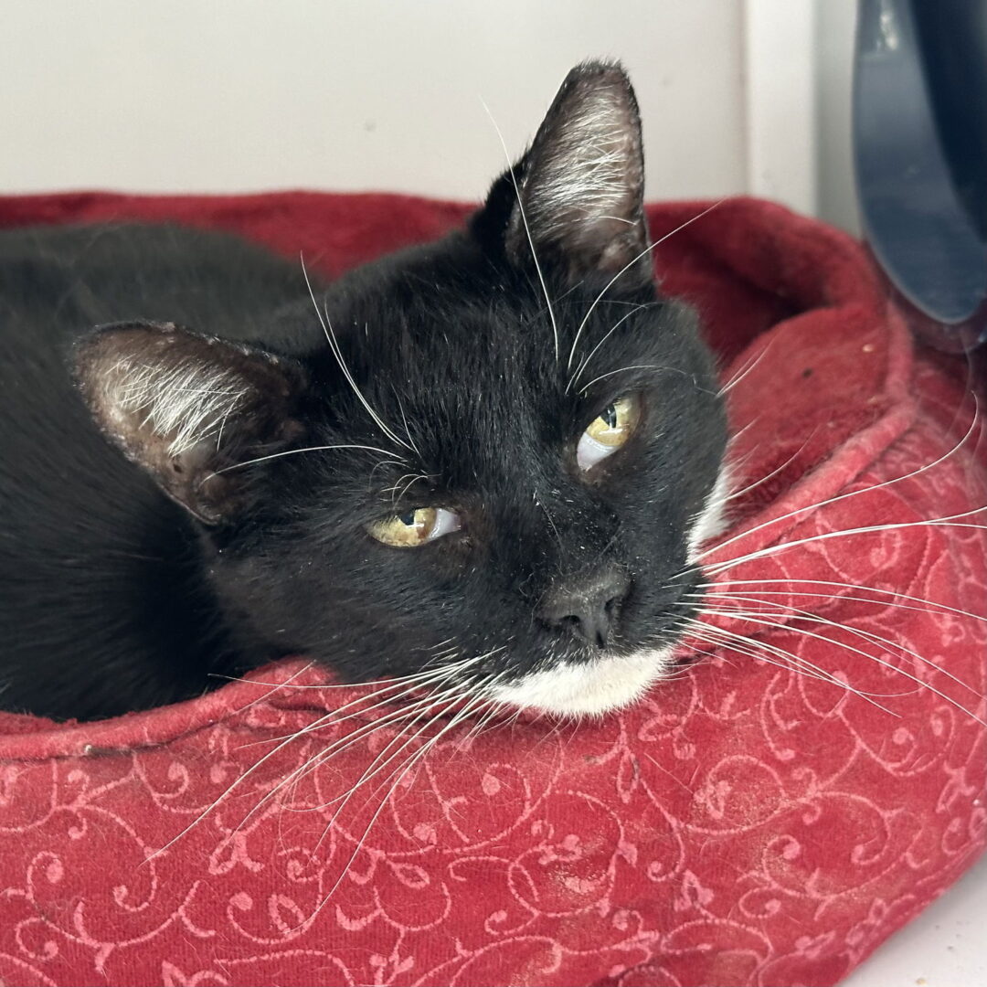 HISTORY: TOM FORD was abandoned in August 2024 and brought to Felines & Friends when found to be FIV+. However, as is typical with many FIV+ cats, this cat has no symptoms, is in excellent health and expected to live a normal lifespan. While conventional thinking is to only place an FIV+ cat in a home with no other cats or with another FIV+ cat, there are many “mixed households.” According to Cornell University, the primary mode of Feline Immunodeficiency Virus (FIV) transmission is through repeated fights resulting in the exchange of blood, and it poses no threat to humans or other species. TEMPERAMENT: TOM FORD is a big, gentle, easy-going guy who doesn’t seem to have a mean bone in his body. He is easy to handle, very much enjoys napping, and would seriously love a soft place to land. This low-maintenance marshmallow previously lived with a brother who passed away just before he came to F&F. His rescuer stated the brothers had been abandoned for a few months before he rescued them. TOM FORD has bumpy ears that do not need treatment. Although he has not objected to living with other cats at F&F, he does not seek cat company and may be just fine as an only cat. AGE: born approx. 10/18/2014 (~10 yrs old at rescue) MICROCHIP #: -5368 DATE OF STERILIZATION: neutered, date unknown VAX RECORD: FVRCP expires: 11/20/25; Rabies expires: 10/25/25 FELV/FIV test: 11/1/24 FIV+ ADDITIONAL INFORMATION: ADOPTION FEE: $100 If you may be interested in adopting, please complete our online application: https://www.fandfnm.org/application. Cat name(s) of interest can be included in your application. Completing an application is the best and fastest way to dialog with our team. For more information, visit www.fandfnm.org. [Santa Fe Animal Svcs. Permit #25-001]