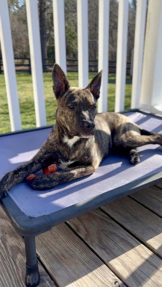Tony, a handsome 6-month-old pup who came to PAR from a local shelter, feeling scared and unsure of people. Since then, he has made incredible strides, building his confidence and learning to trust.Although Tony can be cautious with new faces, once he bonds with you, he becomes an incredibly affectionate and loving companion. He thrives in an environment filled with patience and kindness and would do best in a home with another dog to help him feel comfortable and secure.Tony enjoys chewing on bones, lounging on the couch, and playing with his favorite stuffed toys. He’s a bundle of energy, loving to run and play chase in the yard, so he’ll need a secure, fenced space to explore safely. Tony is progressing well with potty training and will even ring the bell when he needs to go out! While he’s still adjusting to crate time, he would thrive in a home where someone is home often to offer the comfort he needs.If you're looking for a sweet, sensitive pup who will reward your love and patience with endless affection, Tony is the perfect match! He just needs a gentle, understanding home to continue blossoming into the incredible dog he's destined to be.Applications can be filled out at www.piedmontanimalrescue.com/adopt! Petfinder and Adopt-A-Pet does NOT send us Applications. We receive many applications and many never respond after processing GREATLY delaying the pets forever home. Please only apply if you are serious about adopting. Please also make sure your pets are up to date on you species applicable Vaccines (rabies, Distemper/Parvo, FVRCP, Bordetella), spayed/neutered, and on Heartworm prevention if a canine. The adoption fee includes their age appropriate vaccinations(DA2PP and Bordetella), Dewormer, spay/neuter, microchip, heartworm test as well as the registration of their microchip information to you.The first step to adopting is to fill out an application for adoption. Once approved we will arrange a time for you to meet the animal you are interested in. If it is a match the adoption can then be completed and you can take home your new furry family member. If it is not a match we will file your approved application and you can wait till you find the perfect match.