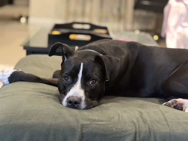Trina is an incredibly sweet, loving, and cuddly goofball who will immediately steal your heart. This adorable, silly girl loves people, plushy toys, and is a surprisingly gifted athlete with a soccer ball. Her ideal day includes playing with her toys and people, getting a good case of the zoomies, and napping on the couch surrounded by fluffy blankets. Trina is housetrained, sleeps through the night, walks well on a leash, knows not to chew on anything other than her toys, and is easy to train (especially with lots of treats on hand). She will be a perfect pet for anyone without other pets, and will quickly have everyone laughing at her silly antics and falling in love with her adorable face and sweet personality.Trina is available for a 10 day adoption trial!Learn more about our